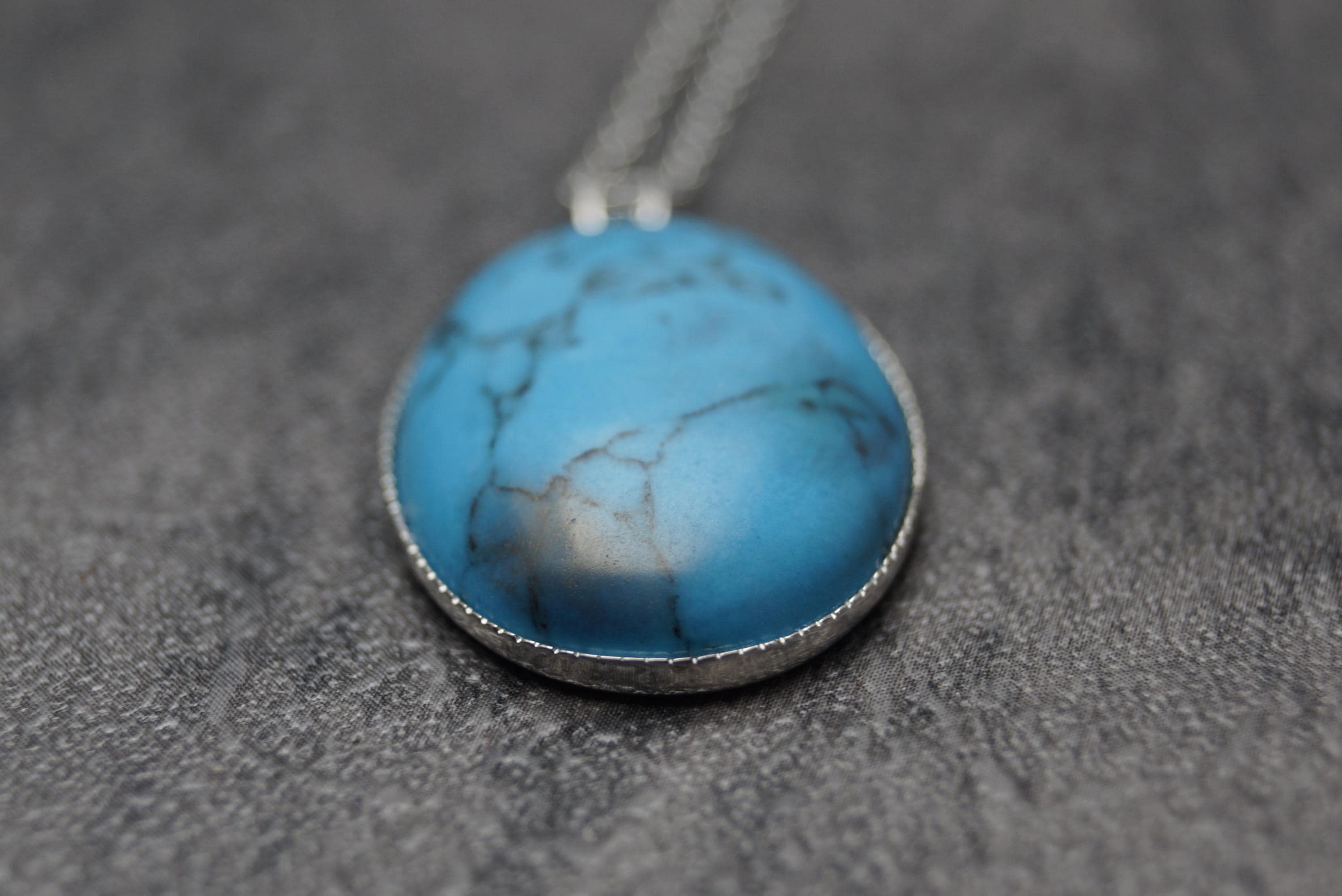 Sterling Silver Turquoise Milled Edge Pendant & 18" Chain, features a natural Turquoise gemstone.