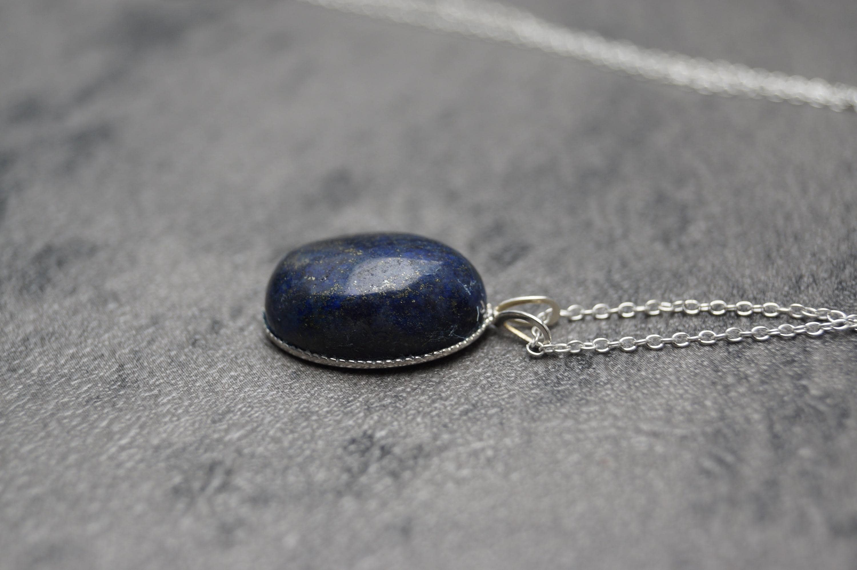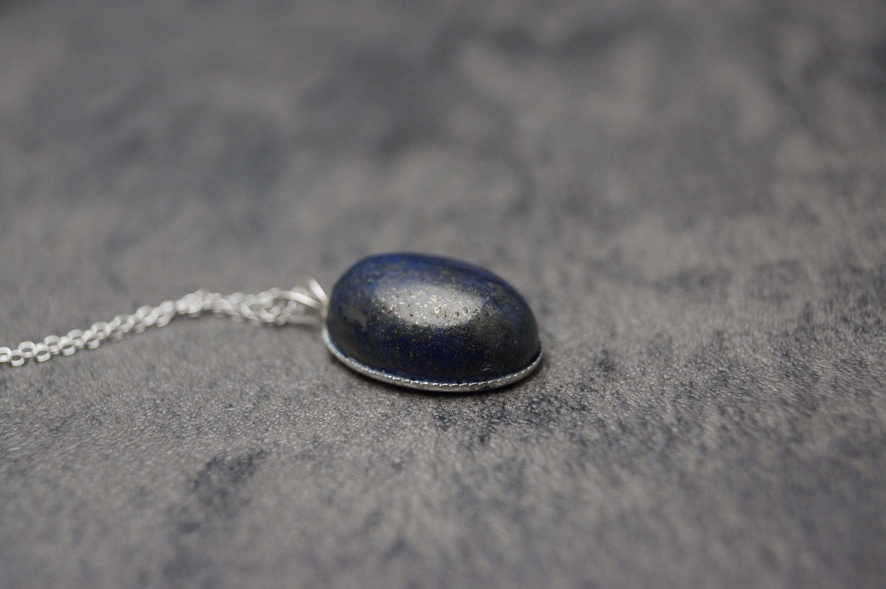 Highly polished Lapis Lazuli gemstone pendant is a great example of this popular stone, perfect for those looking for a sterling silver Lapis Lazuli pendant. Hallmarked 925 Pendant and Chain