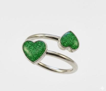 This is a genuine Hallmarked Sterling Silver Double Heart Adjustable Ring incorporating the ashes, hair or fur of a loved one or pet with Green Eco-Glitter.