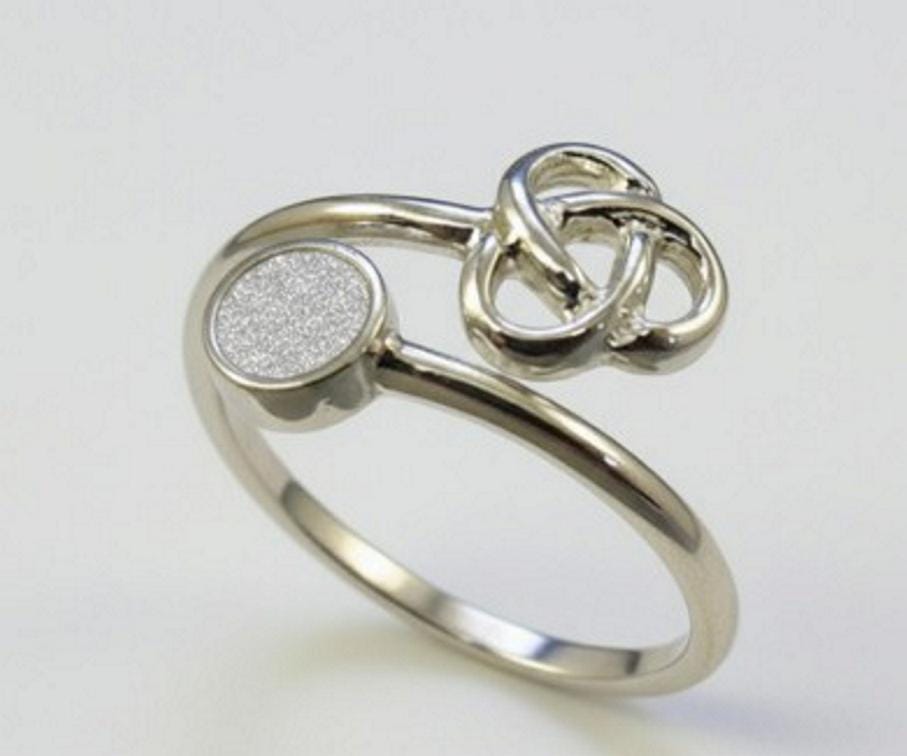 Personalised Sterling Silver Celtic Adjustable Ring with a 4mm Setting including Ashes or Hair Inlaid With White Eco-Glitter