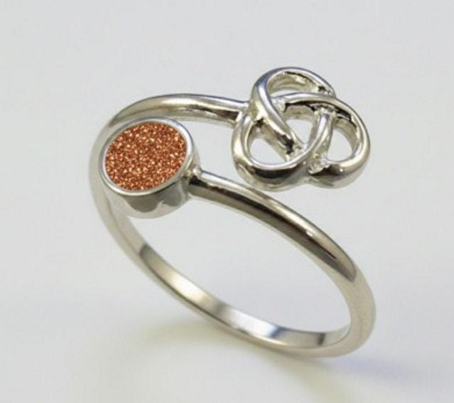 This is a genuine Hallmarked Sterling Silver Celtic Adjustable Ring with a 4mm Setting incorporating the ashes, hair or fur of a loved one or pet with Copper Eco-Glitter.