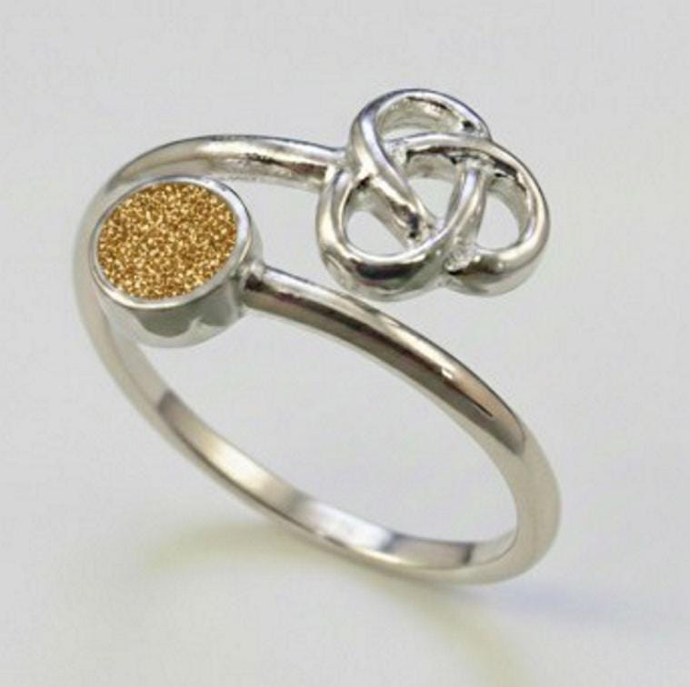 Personalised Sterling Silver Celtic Adjustable Ring with a 4mm Setting including Ashes or Hair Inlaid With Gold Eco-Glitter