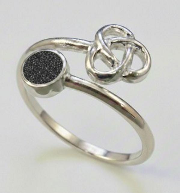 Personalised Sterling Silver Celtic Adjustable Ring with a 4mm Setting including Ashes or Hair Inlaid With Black Eco-Glitter