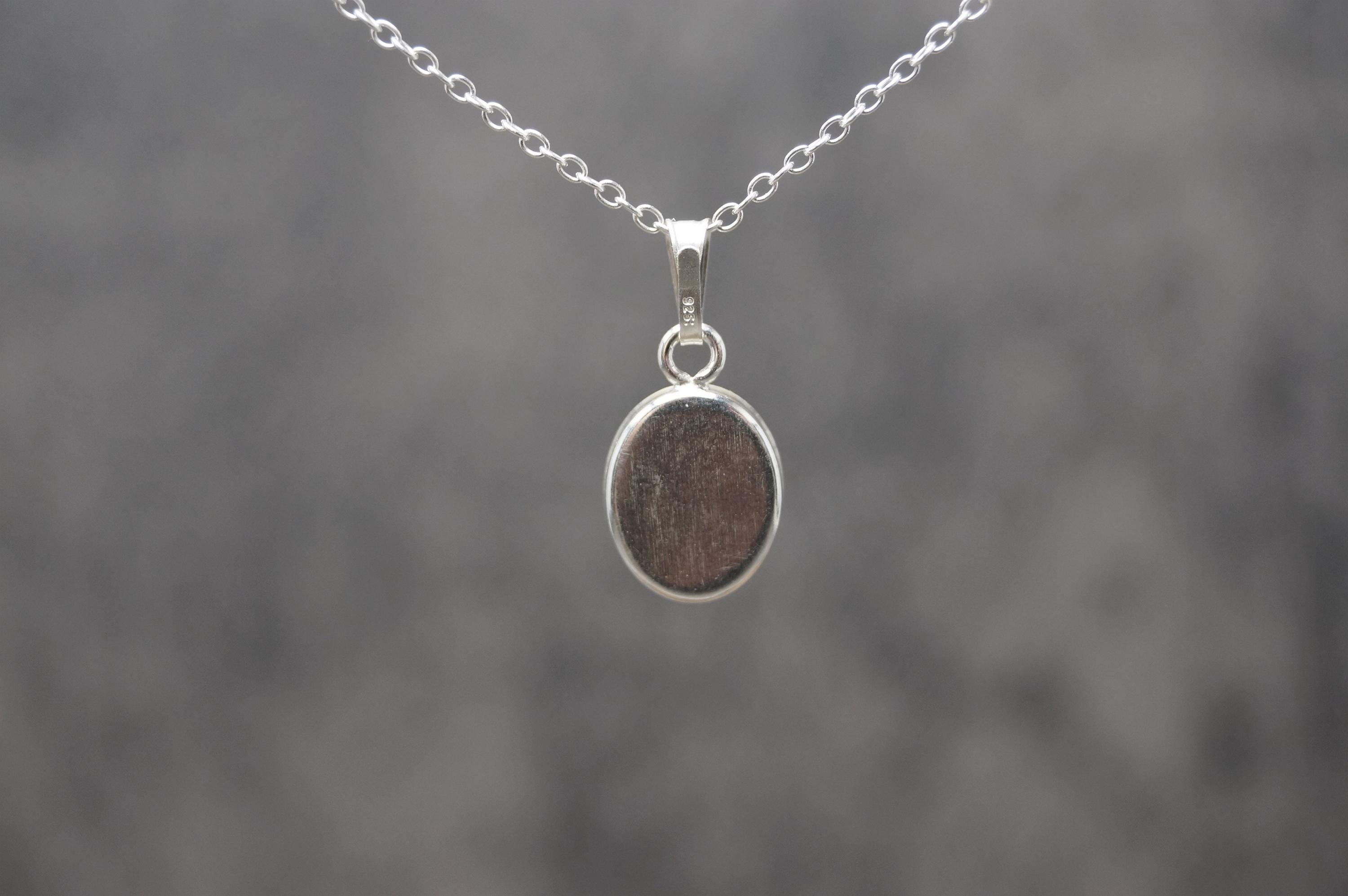 This is a genuine Hallmarked Sterling Silver oval pendant with a 10mm x 8mm Setting incorporating the ashes, hair or fur of a loved one or pet with Magenta Eco-Glitter.