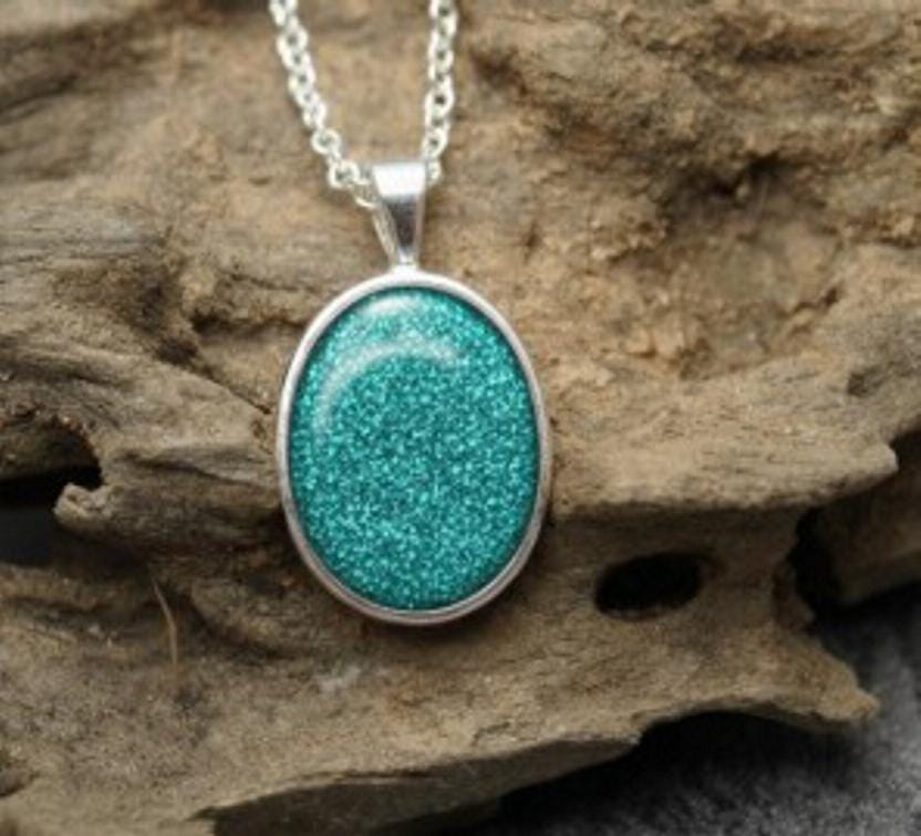 This is a genuine Hallmarked Sterling Silver oval pendant with a 10mm x 8mm Setting incorporating the ashes, hair or fur of a loved one or pet with Aqua Eco-Glitter.
