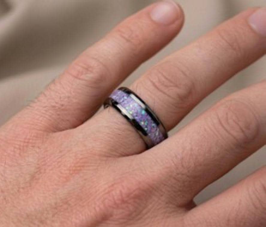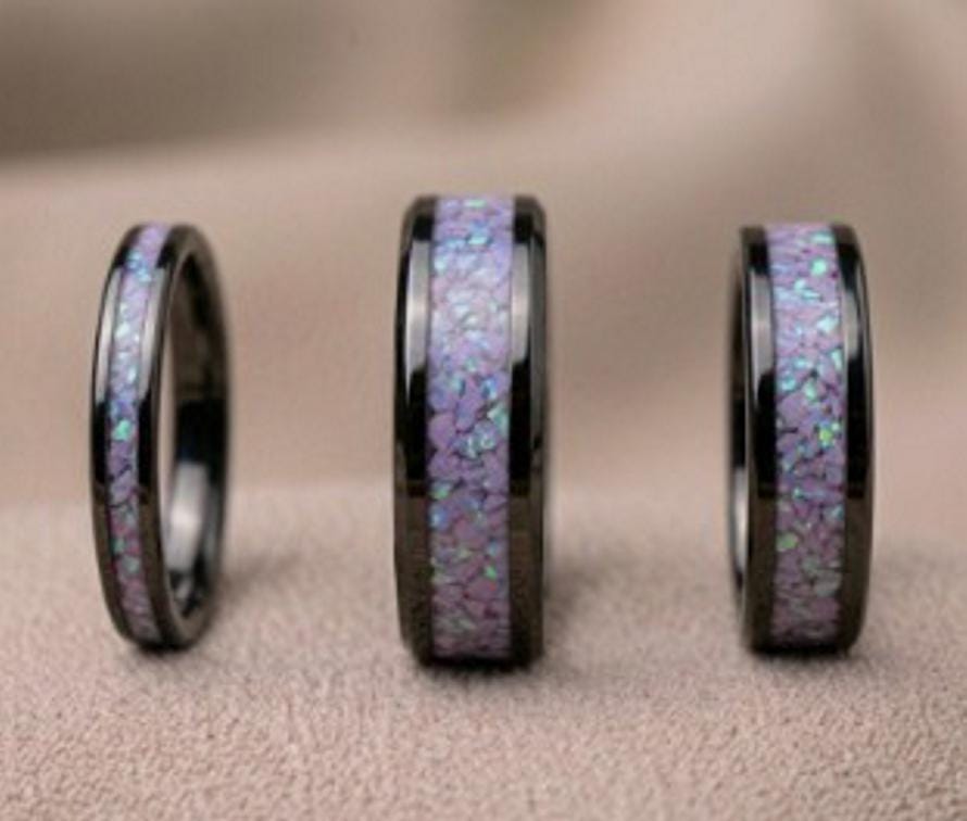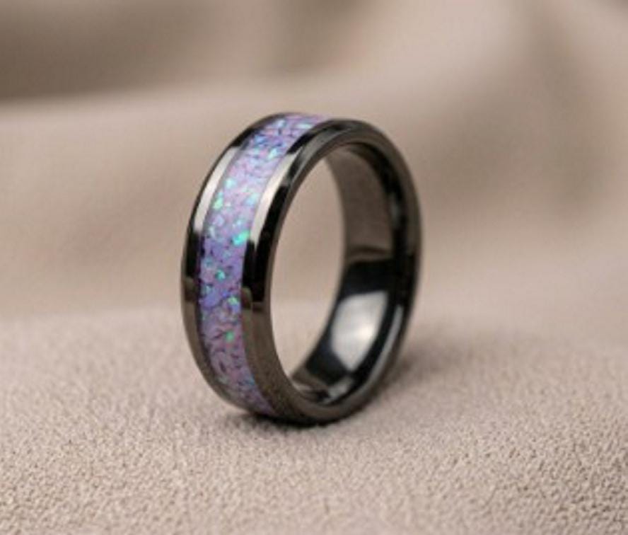 Multi-Lavinder Opal Black Ceramic Wedding Band - Ring for men and women - Unique Ring