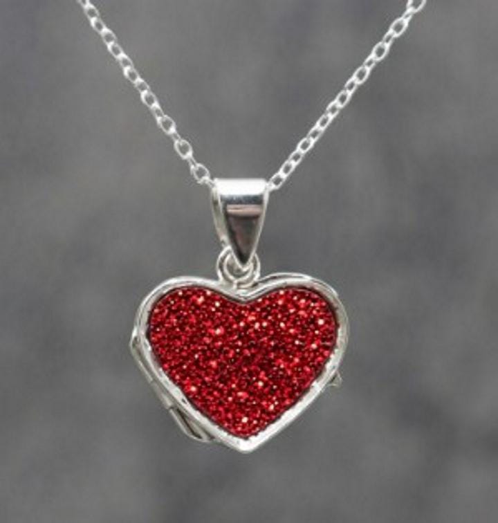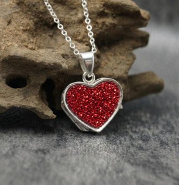 This is a genuine Hallmarked Sterling Silver heart locket incorporating the ashes, hair or fur of a loved one or pet with Red Eco-Glitter.