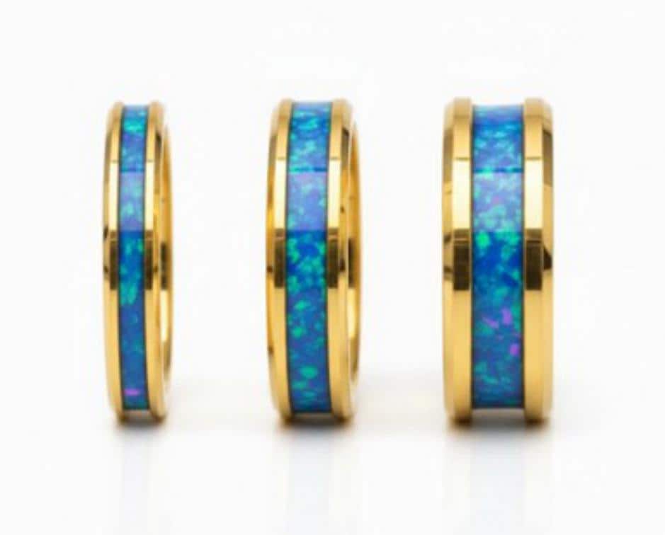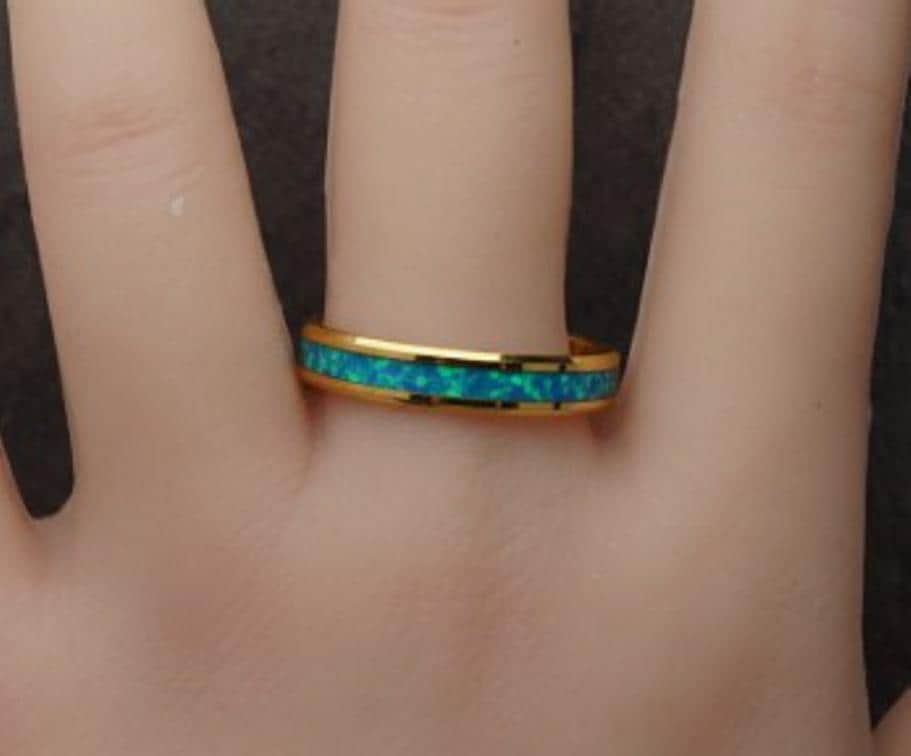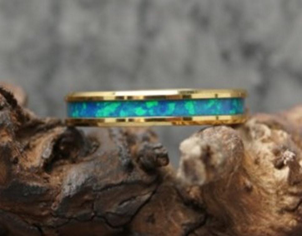 Blue Pacific Opal Gold Plated Tungsten Wedding Band or Great Gift Idea - Ring for men and women - Unique Ring