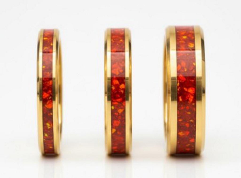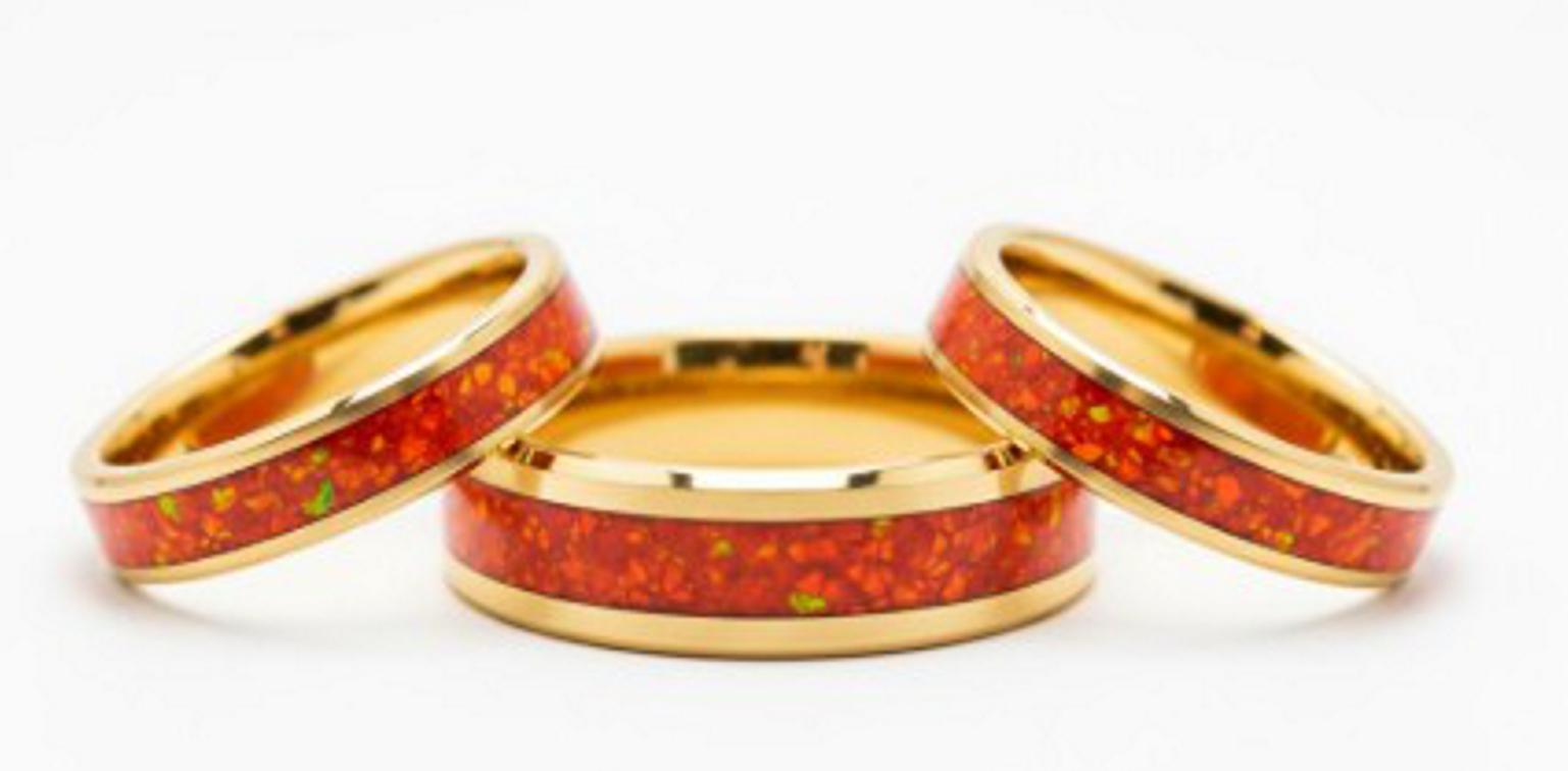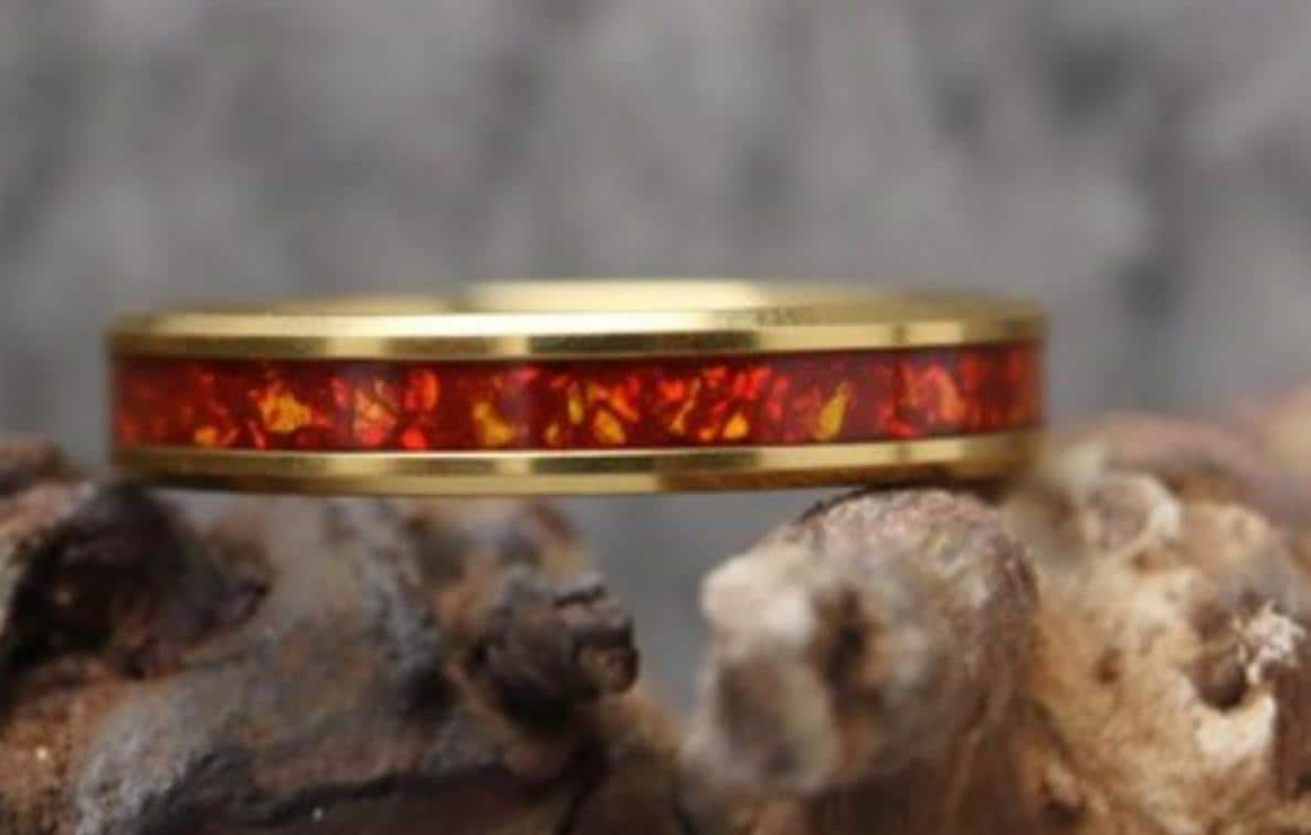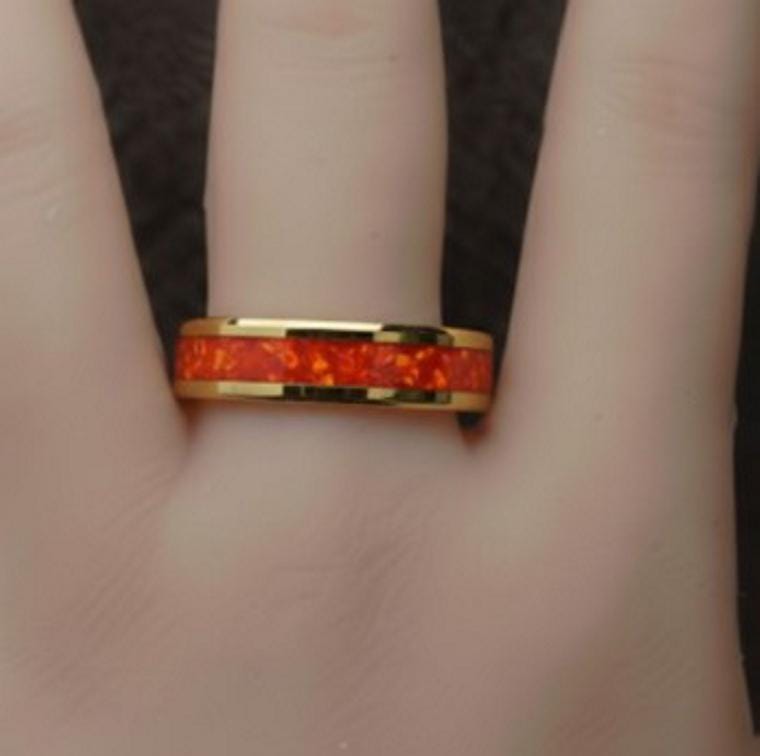 Ruby Red Opal Gold Plated Tungsten Ring - Unique Opal Ring for Men or Women.