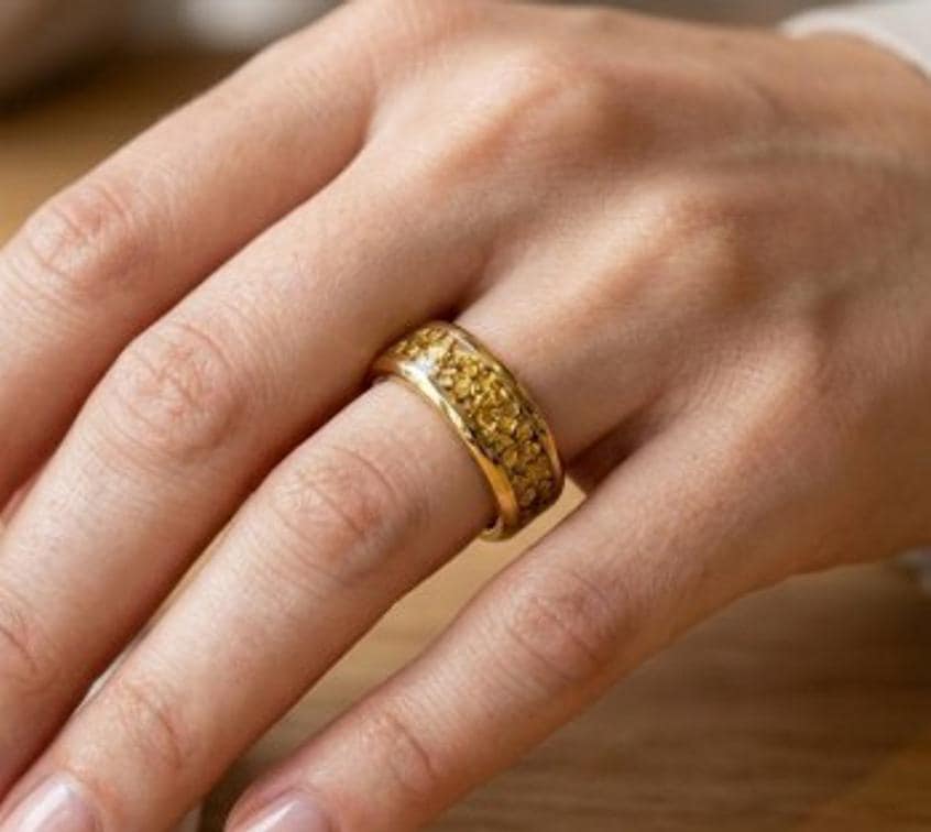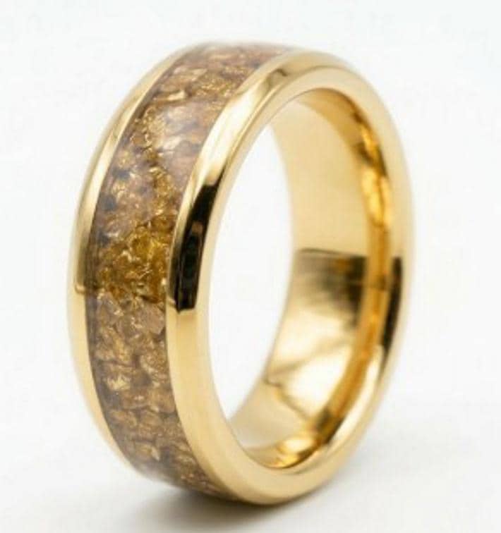 This genuine Gold Plated Tungsten Carbide ring is inlaid with Champagne Cubic Zirconia (CZ) Stones.