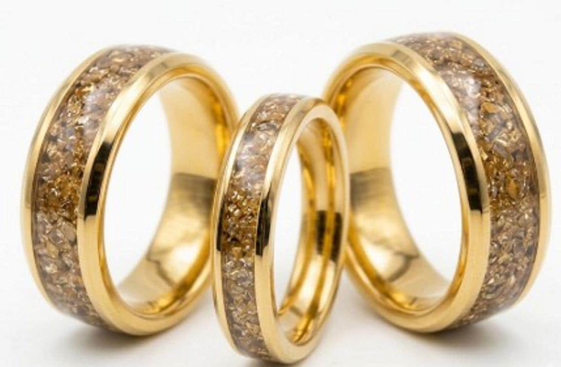 Champagne CZ Stones Inlaid Gold Plated Tungsten Ring - Available 4mm, 6mm or 8mm wide