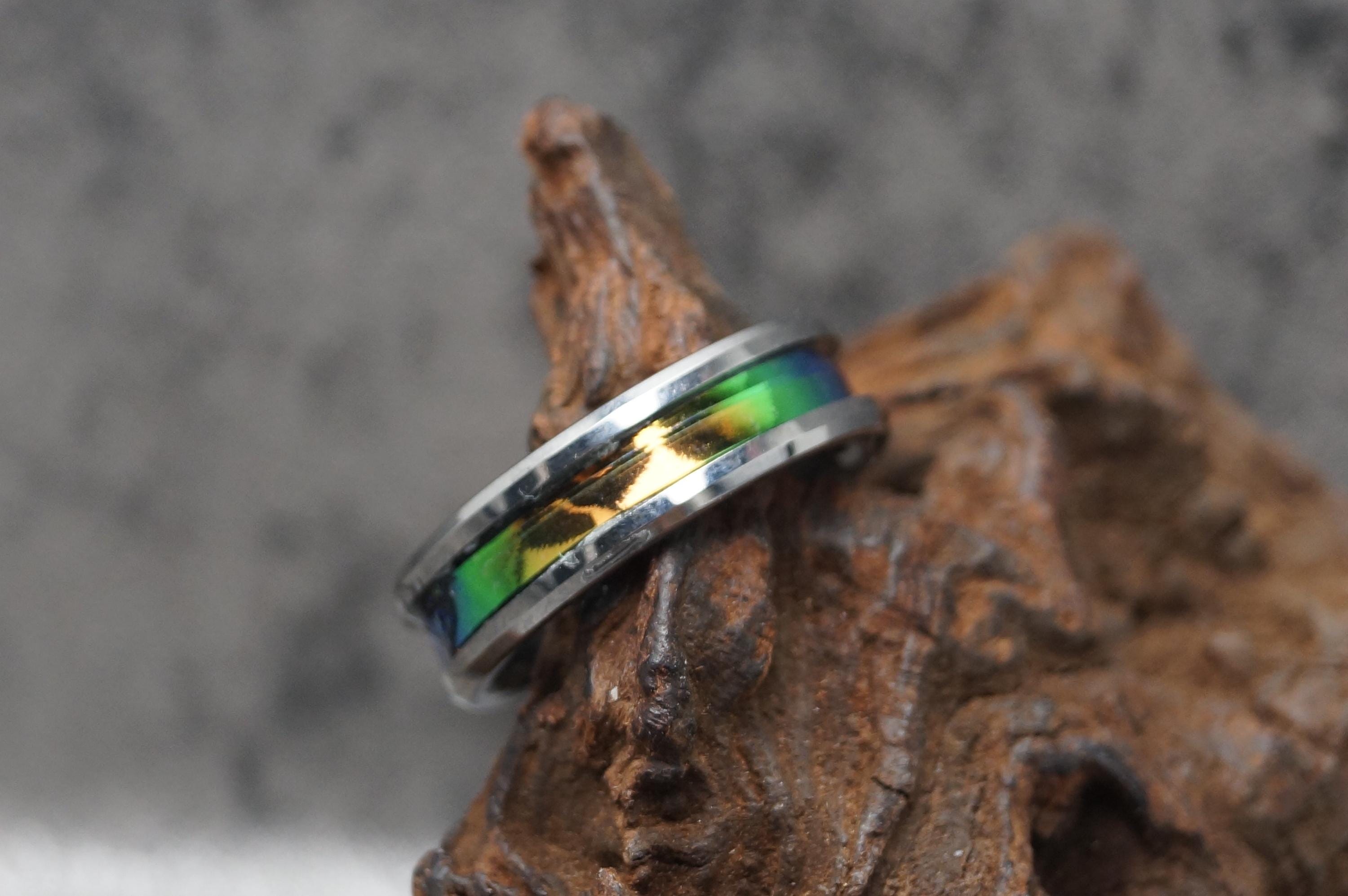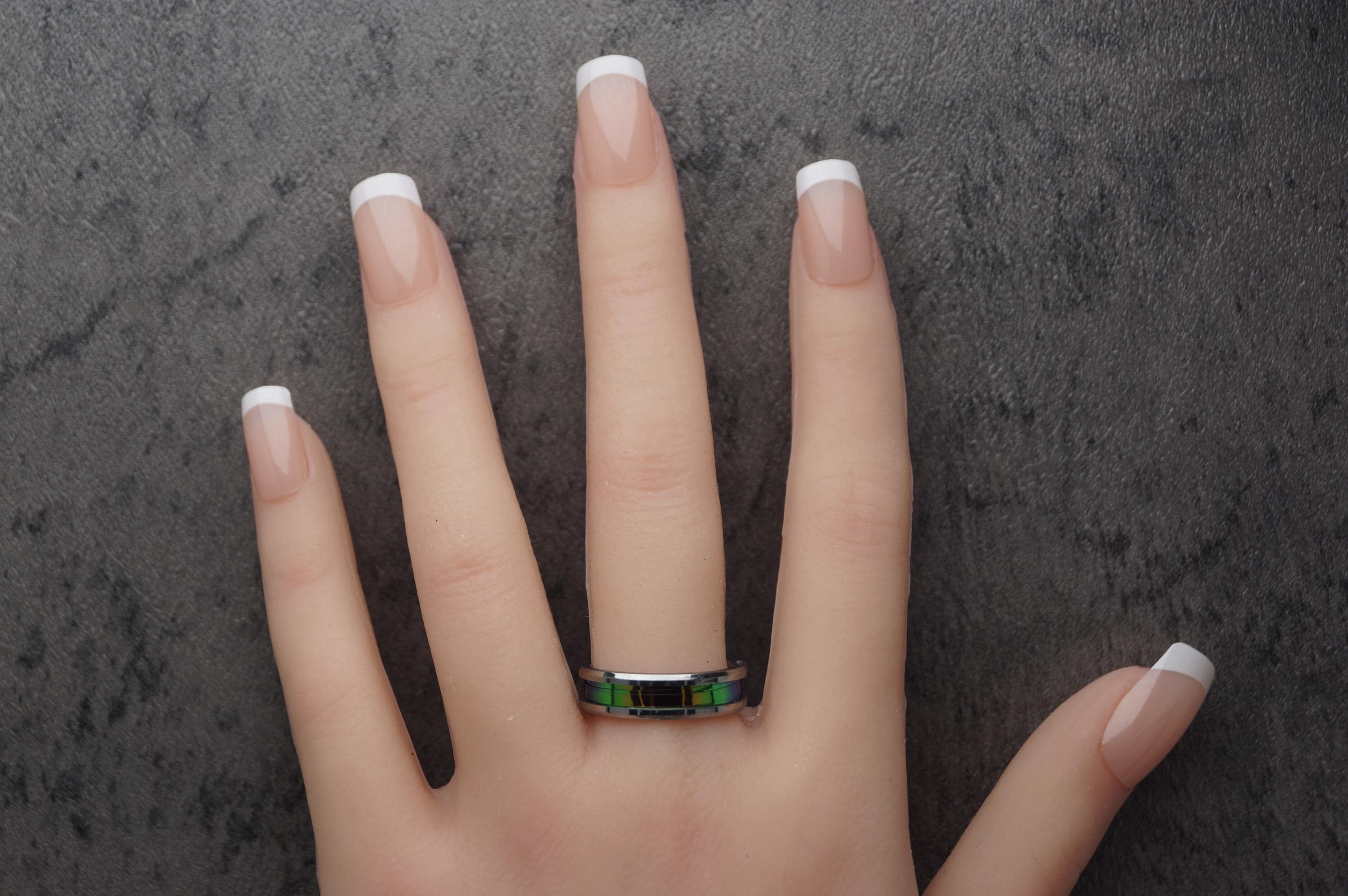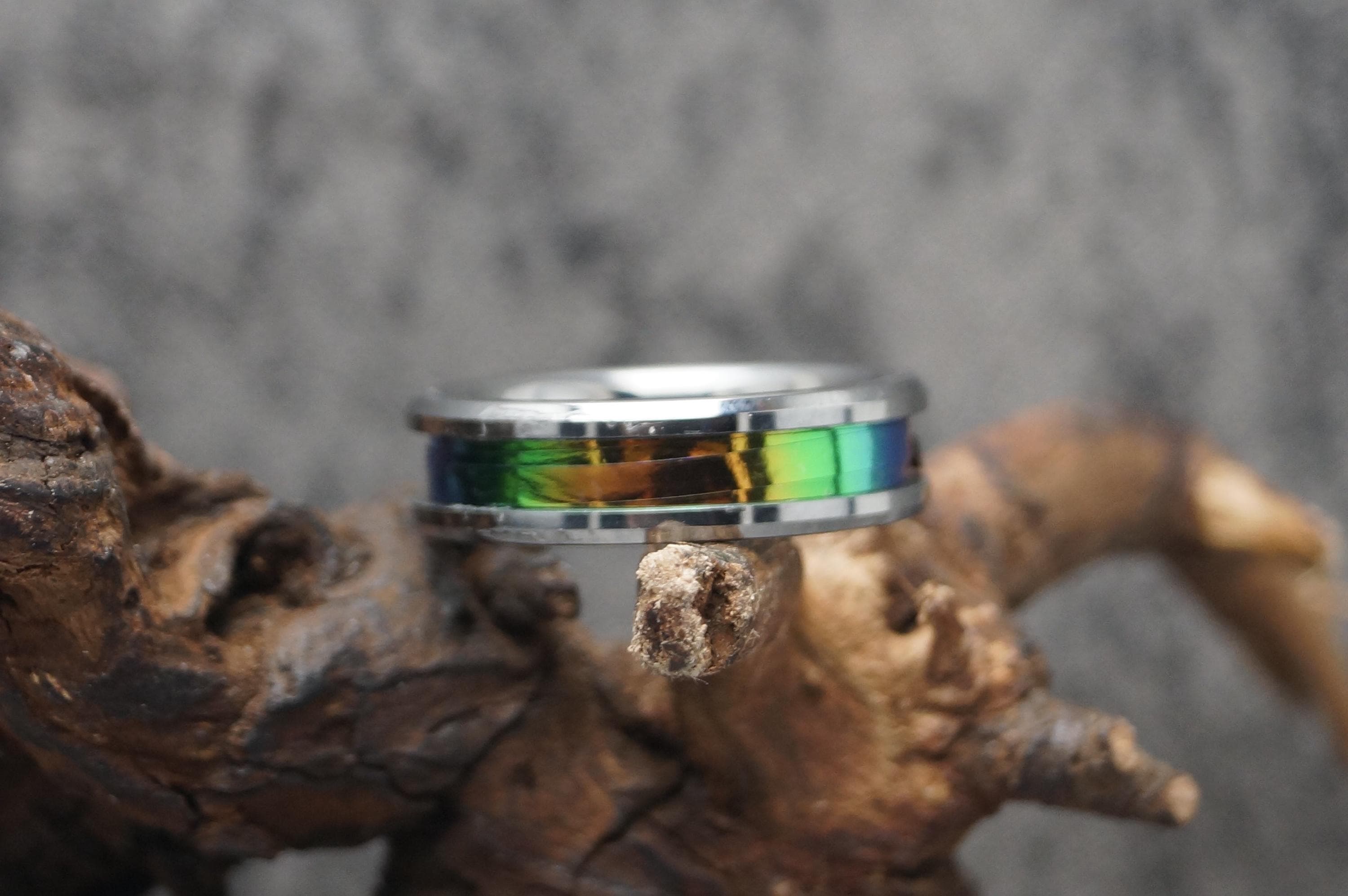 This genuine Tungsten Carbide ring is inlaid with genuine Peacock Tinsel Fishing Bait Making Tying Line (1.5mm).
