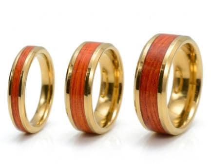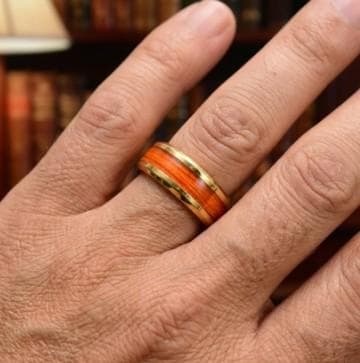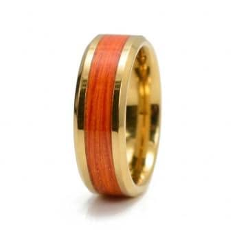 Orange Fishing Line Inlay Gold Plated Tungsten Ring - Available 4 mm, 6 mm or 8 mm Wide Ring - UV Glow Ring.
