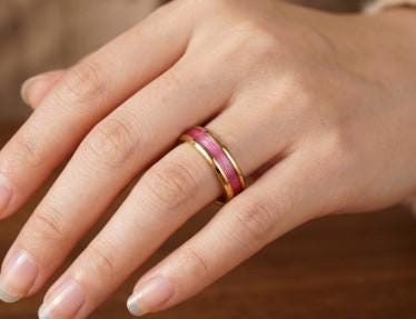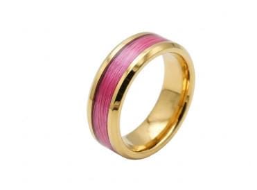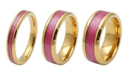 This genuine Gold Plated Tungsten Carbide ring is inlaid with genuine Pink Fishing Line - UV Glow Pink.