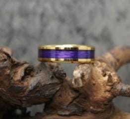 Purple Fishing Line Gold Plated Tungsten Ring - Available 4mm, 6mm or 8mm wide ring