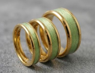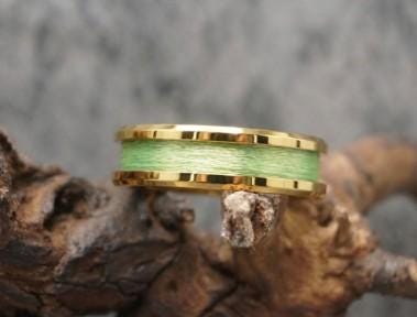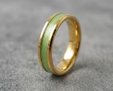 This genuine Gold Plated Tungsten Carbide ring is inlaid with genuine Lime Green Fishing Line.