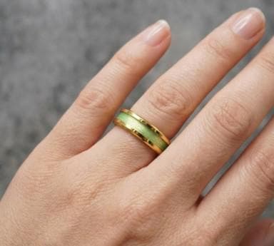 Lime Green Fishing Line Inlay Gold Plated Tungsten Ring - UV Glow Ring - Available 4 mm, 6 mm or 8 mm Wide