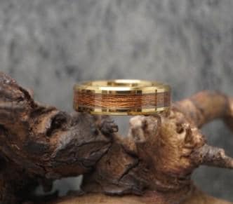 Copper Fishing Line Inlay Gold Plated Tungsten Ring - Available 4 mm, 6 mm or 8 mm Wide Ring
