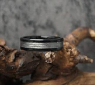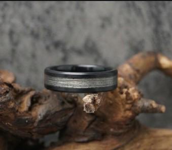This genuine Black Ceramic ring inlaid with 100% Genuine Silver fishing Line