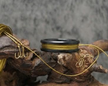 Gold fishing Line Black Ceramic ring inlaid with Genuine fishing Line - 4 mm, 6 mm or 8 mm wide ring.