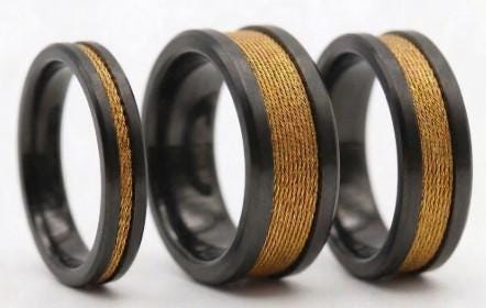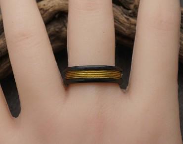This genuine Black Ceramic ring inlaid with 100% Genuine Gold fishing Line.