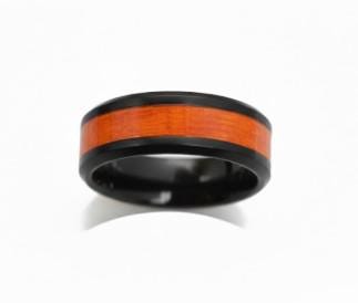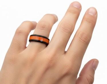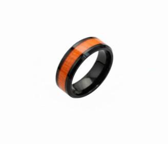 This genuine Black Ceramic ring inlaid with 100% Genuine Orange fishing Line - UV Glow fishing Line ring.