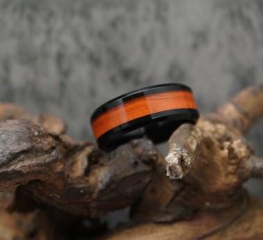 Orange fishing Line Black Ceramic ring inlaid with Genuine Orange fishing Line - UV Glow Ring 4 mm, 6 mm or 8 mm wide ring.