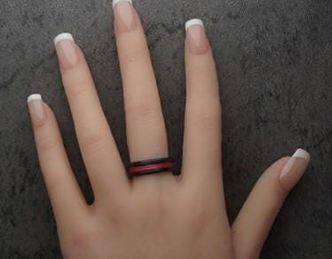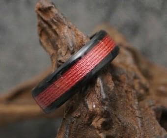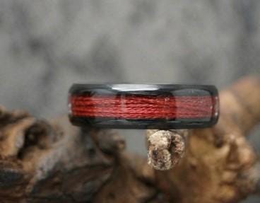 This genuine Black Ceramic ring inlaid with 100% Genuine Red fishing Line.