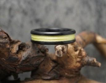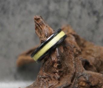 Yellow Gold fishing Line Black Ceramic ring inlaid with Genuine fishing Line - 4 mm, 6 mm or 8 mm wide ring.