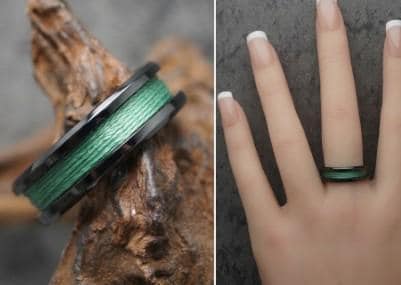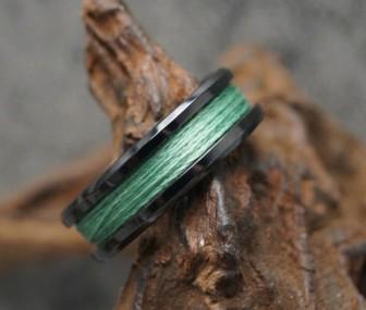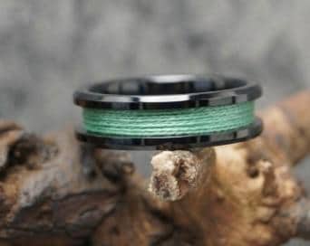 This genuine Black Ceramic ring inlaid with 100% Genuine Green fishing Line.