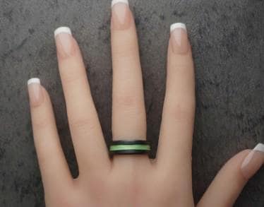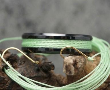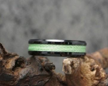 This genuine Black Ceramic ring inlaid with 100% Genuine Green fishing Line.