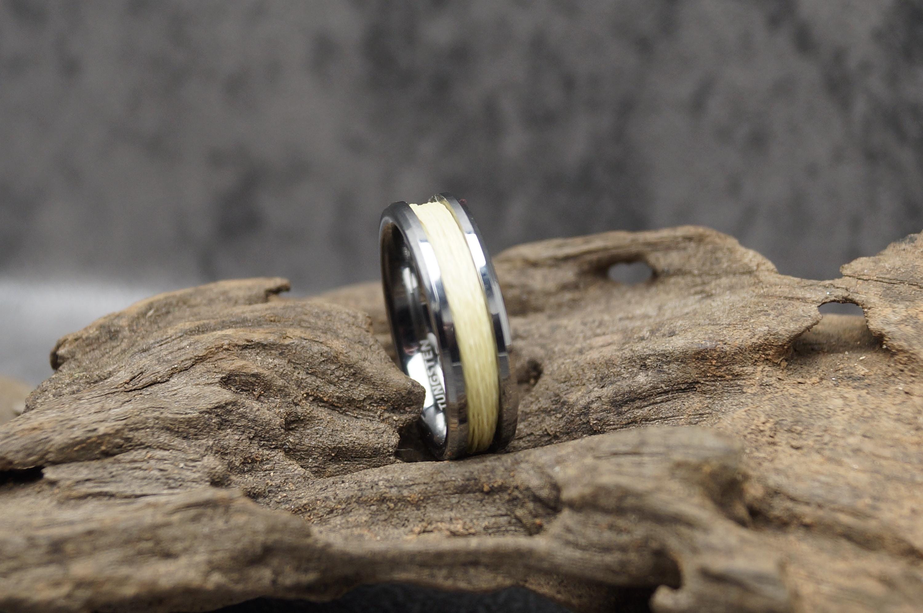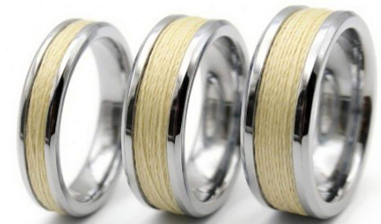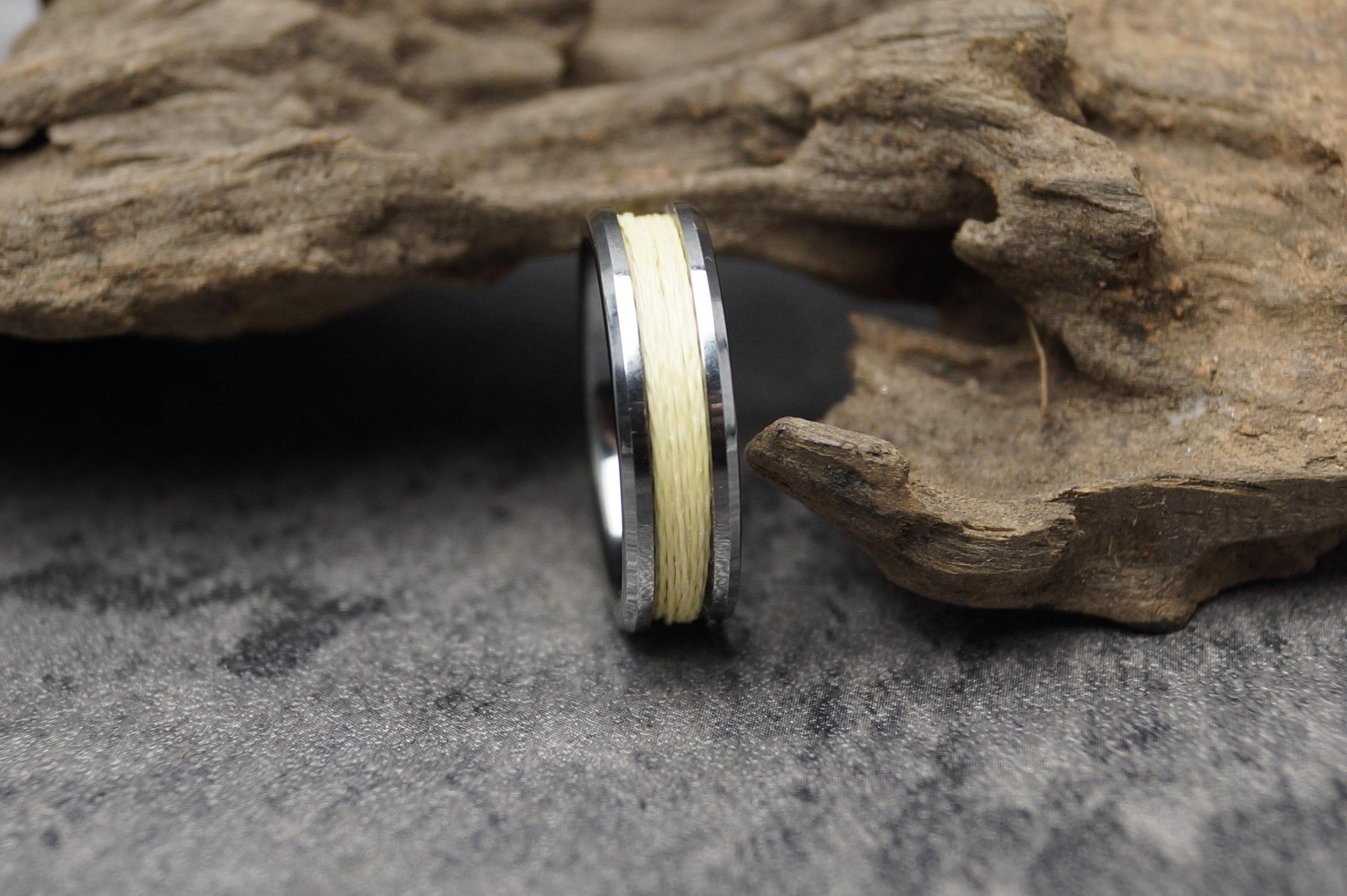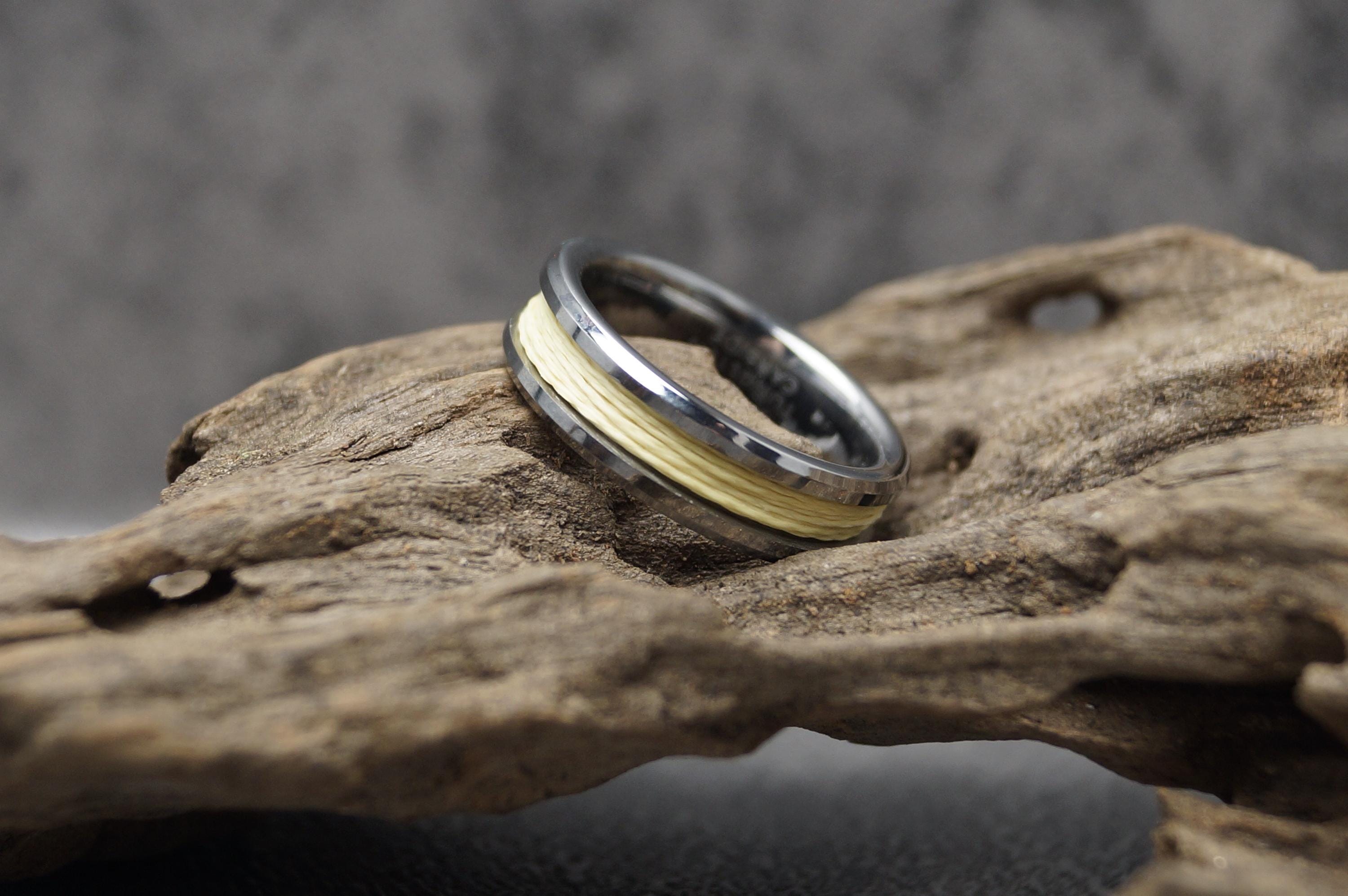 This genuine Tungsten ring inlaid with 100% Genuine Kevlar Braided Line: Yellow