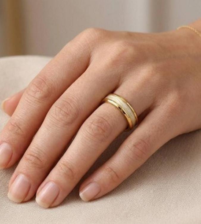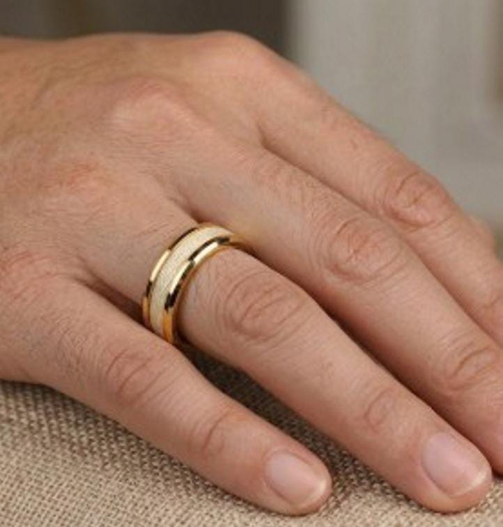 This genuine Gold Plated Tungsten ring inlaid with 100% Genuine Kevlar Braided Line: Yellow