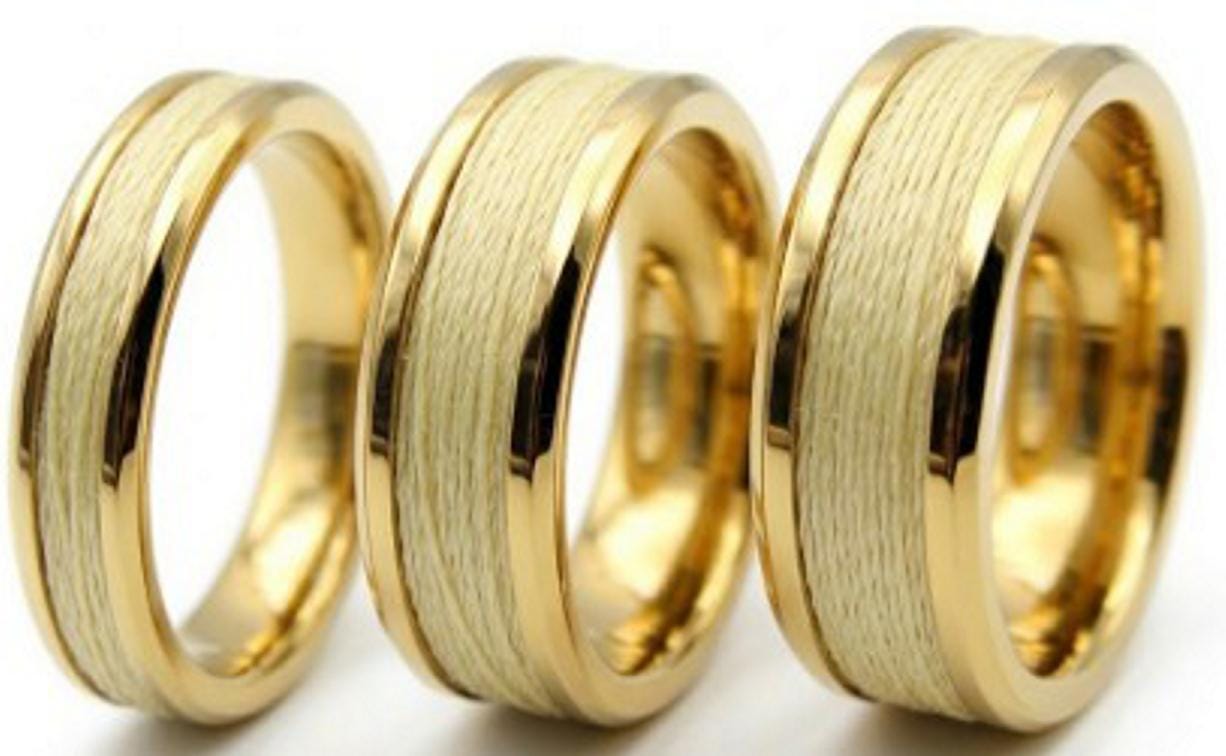 Kevlar Yellow Braided Line Inlaid Gold Plated Tungsten Ring, Genuine Kevlar Line - Rings available 4 mm, 6 mm or 8 mm wide ring.