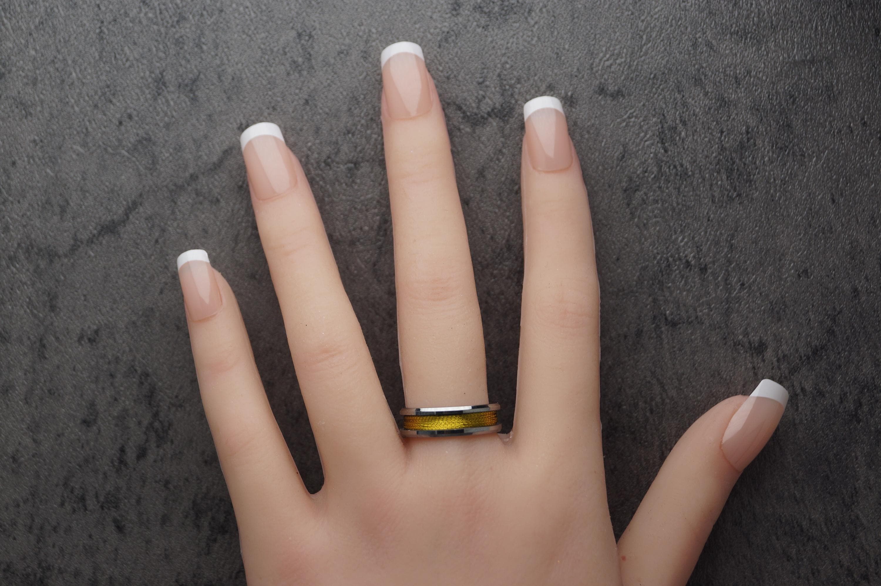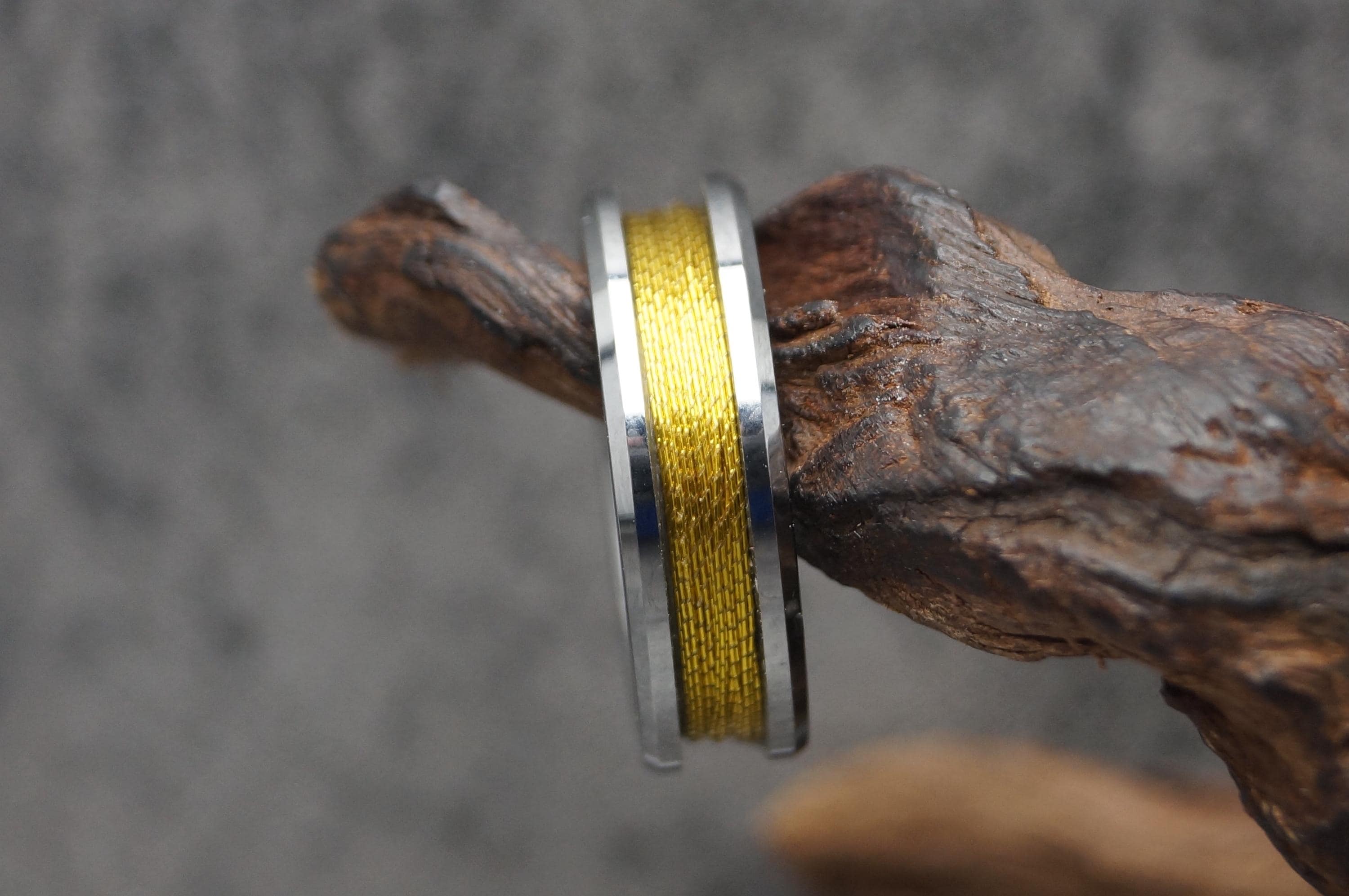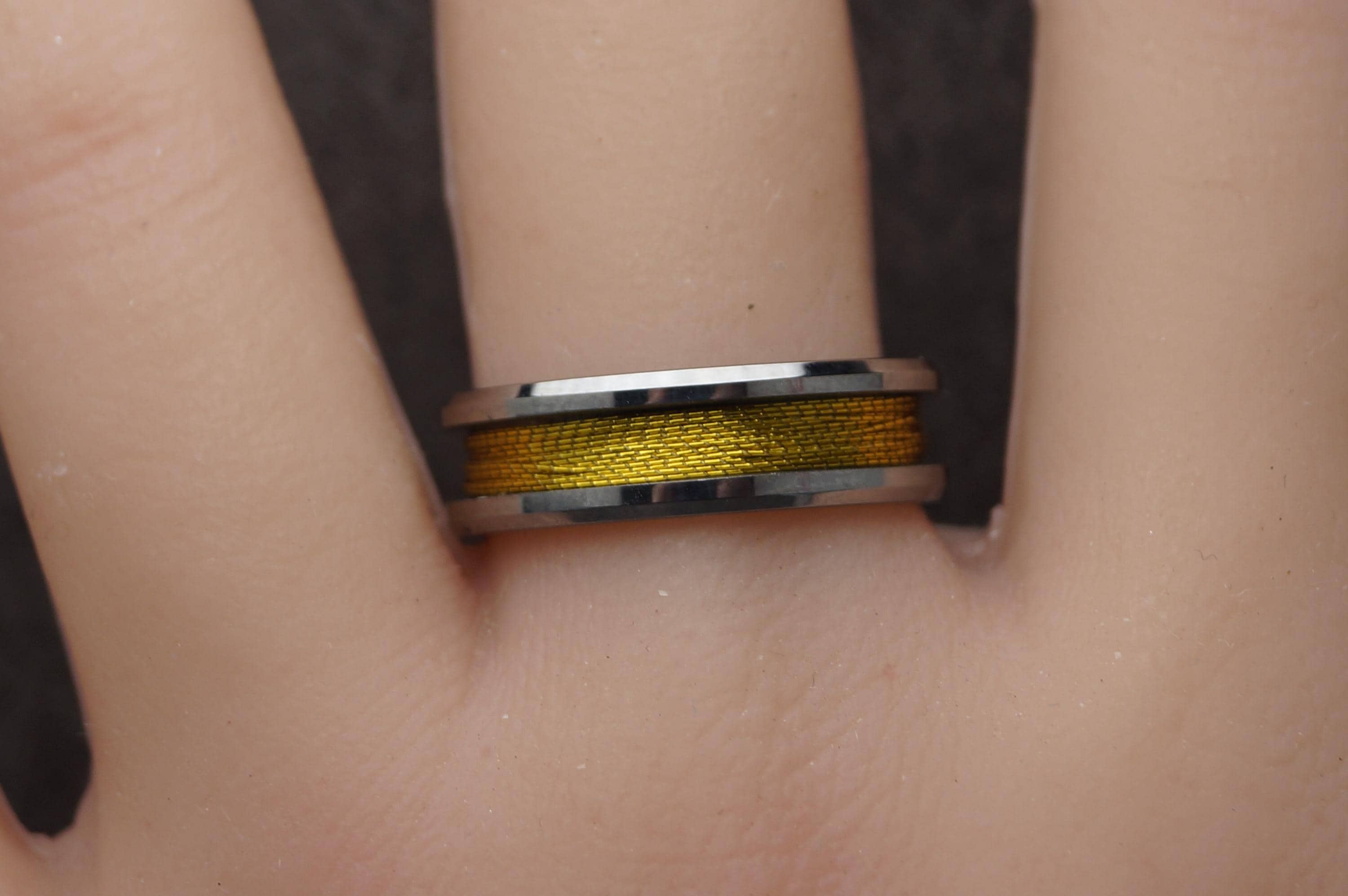 This genuine Tungsten Carbide ring is inlaid with genuine Gold fishing rod metallic thread guide ring fix line.