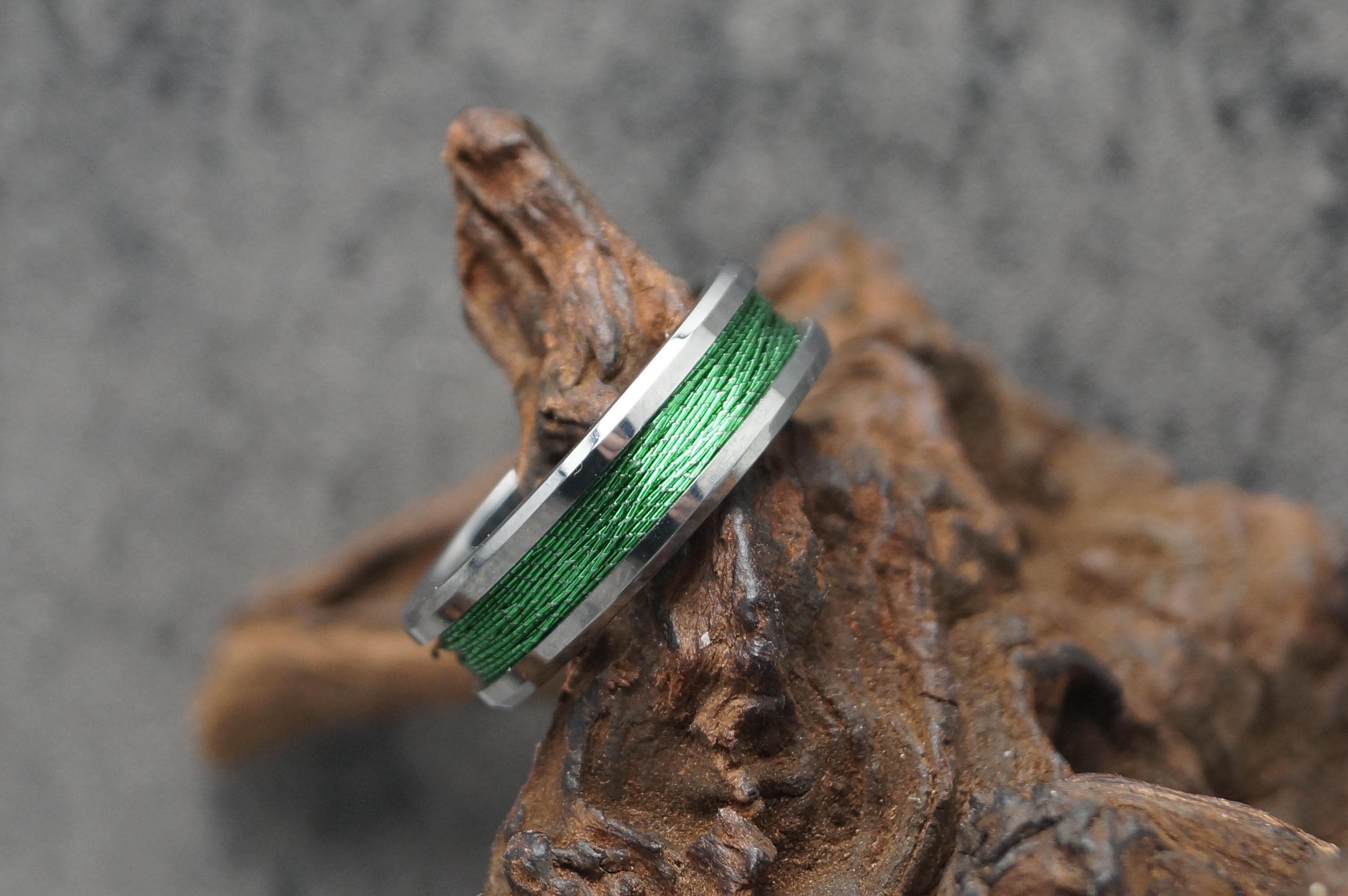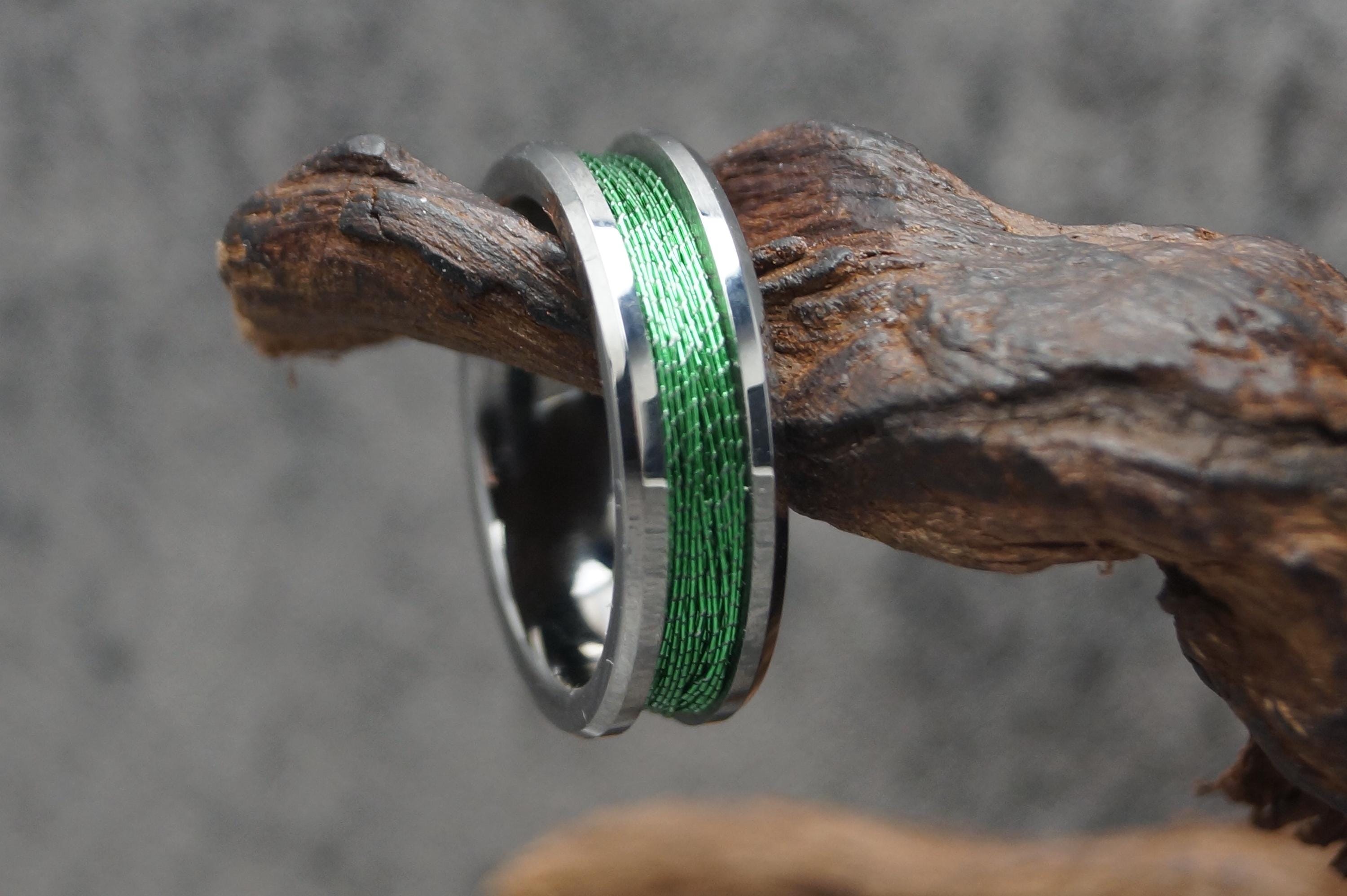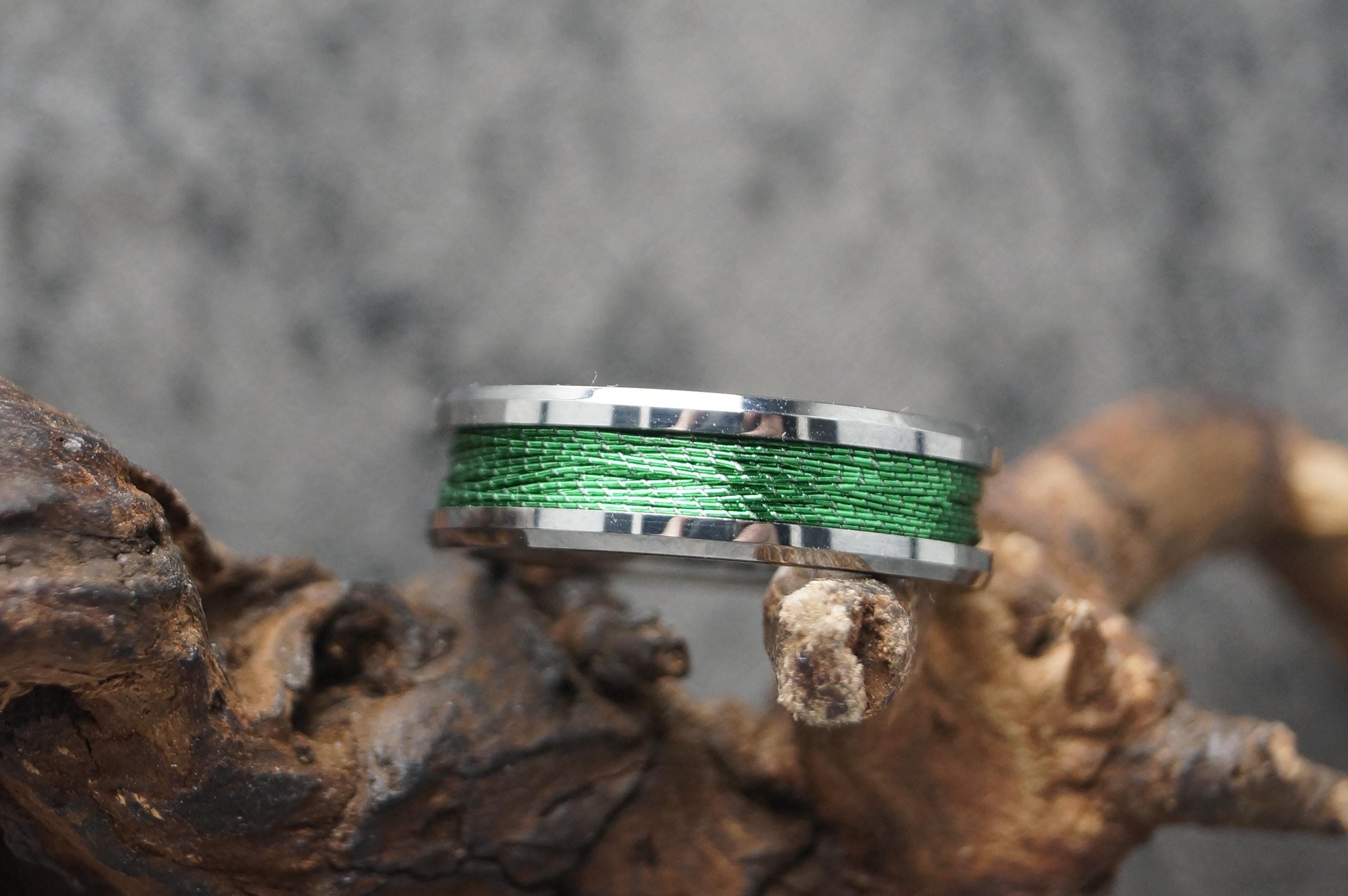 This genuine Tungsten Carbide ring is inlaid with genuine Green fishing rod metallic thread guide ring fix line.