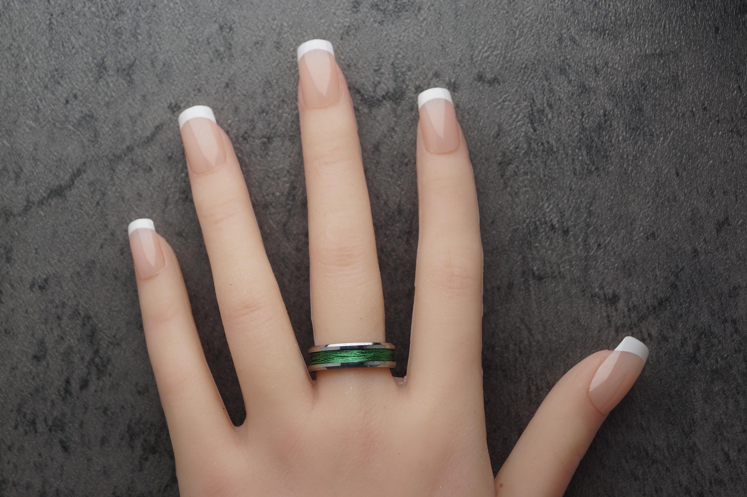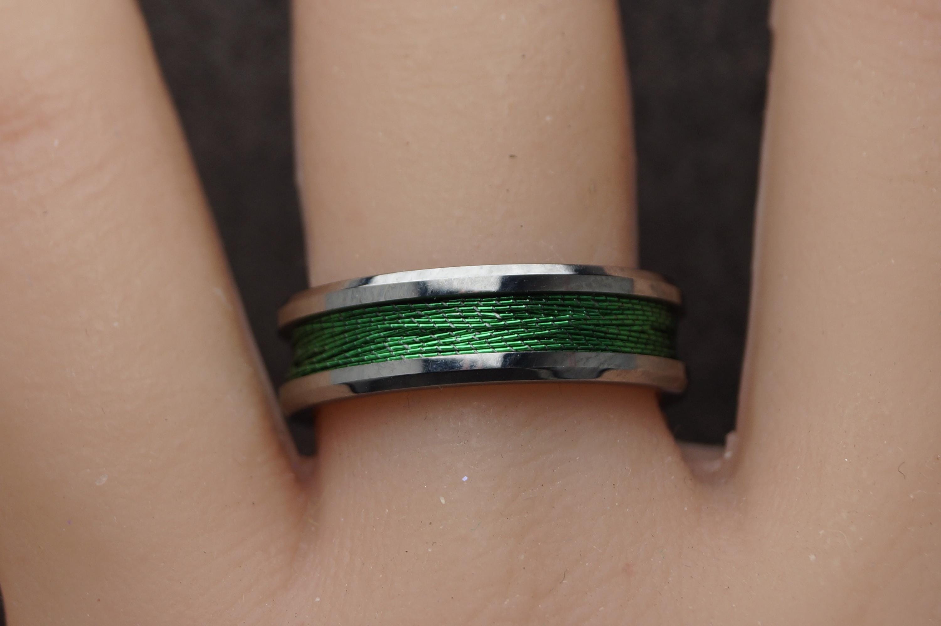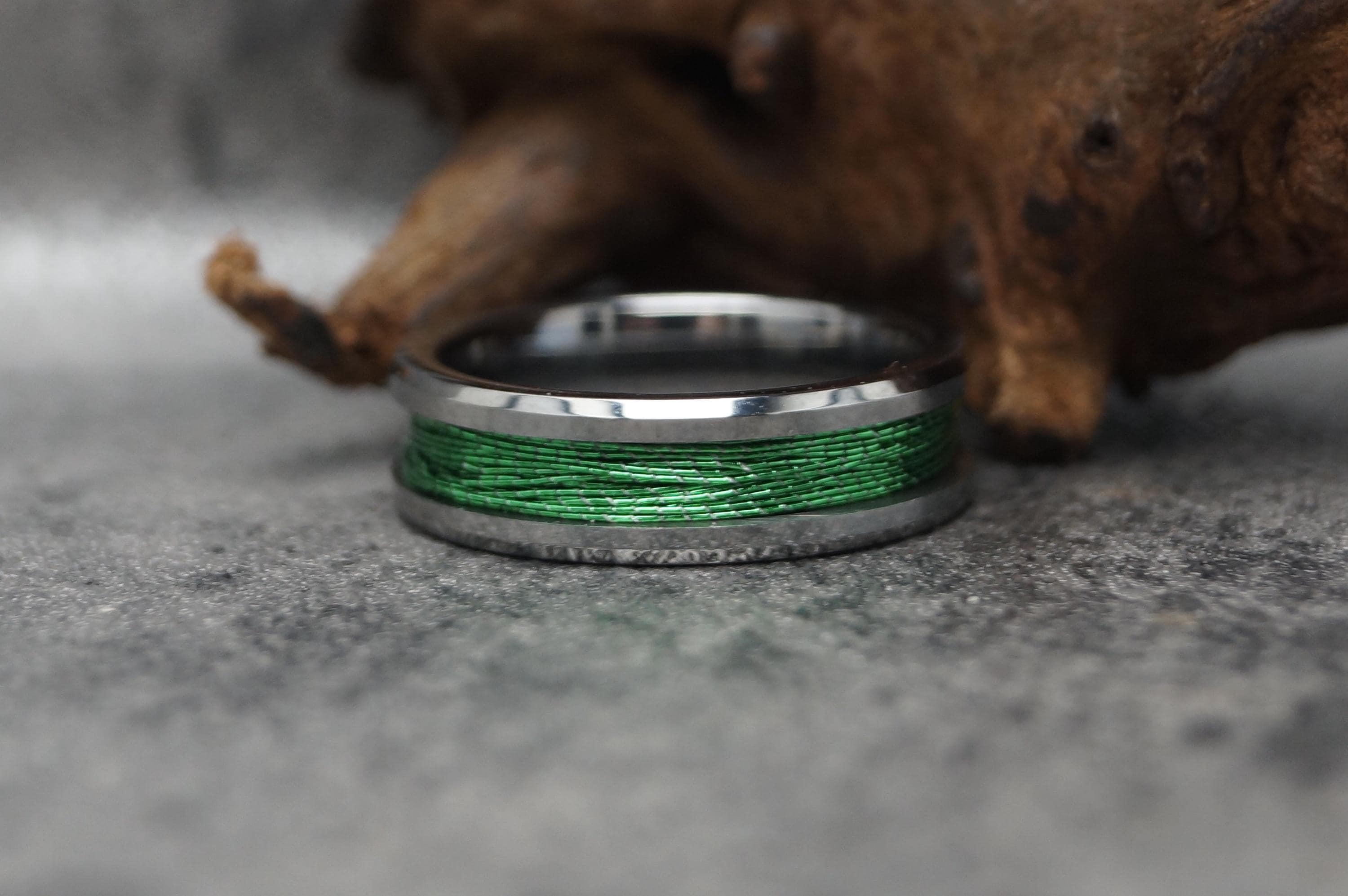 This genuine Tungsten Carbide ring is inlaid with genuine Green fishing rod metallic thread guide ring fix line.
