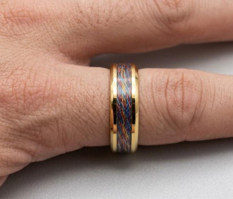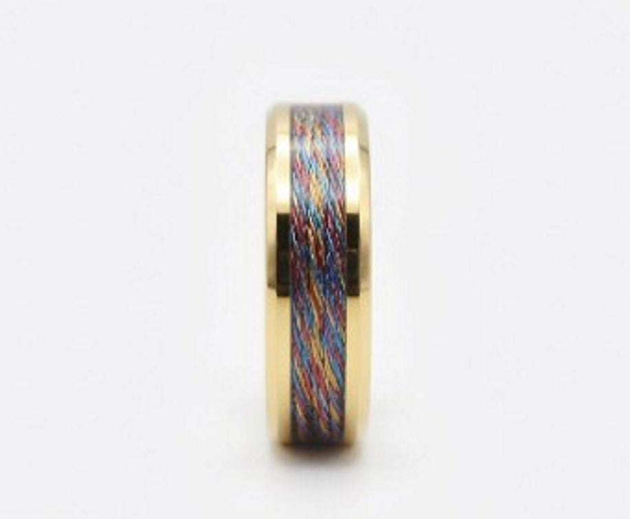 Multi-Colour Metalic Thread Inlay Gold Plated Tungsten Ring - Available 4mm, 6mm or 8mm wide