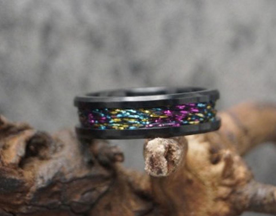 This genuine Black Ceramic ring is inlaid with genuine Multi-Colour fishing rod metallic thread guide ring fix line.