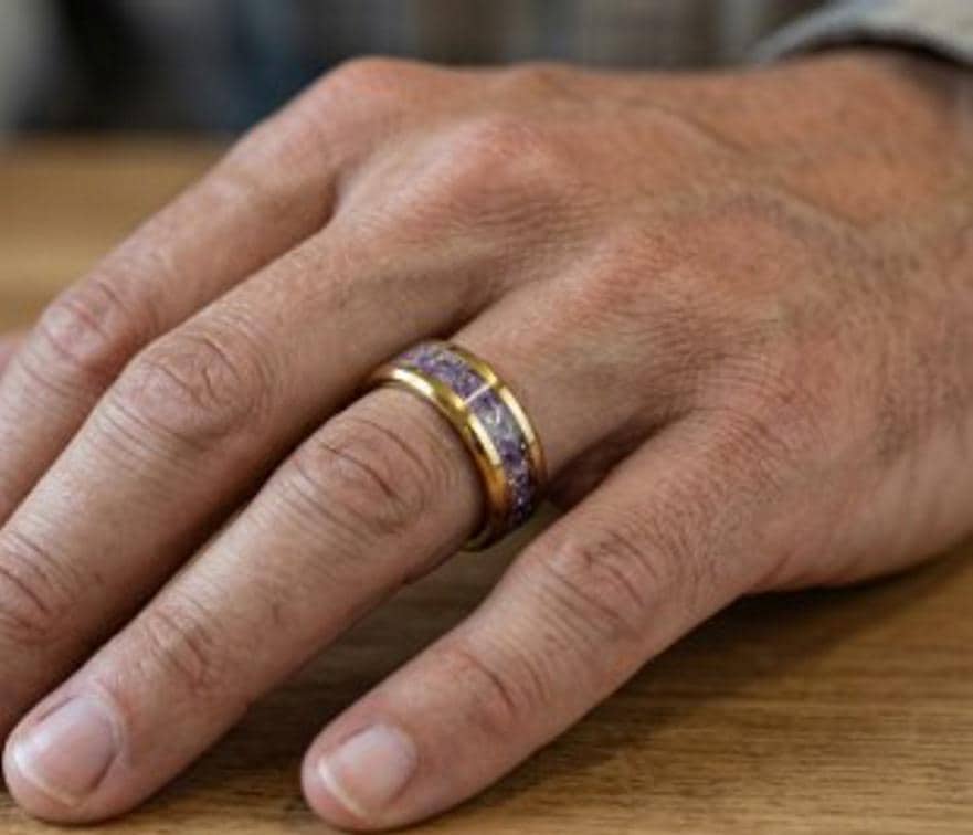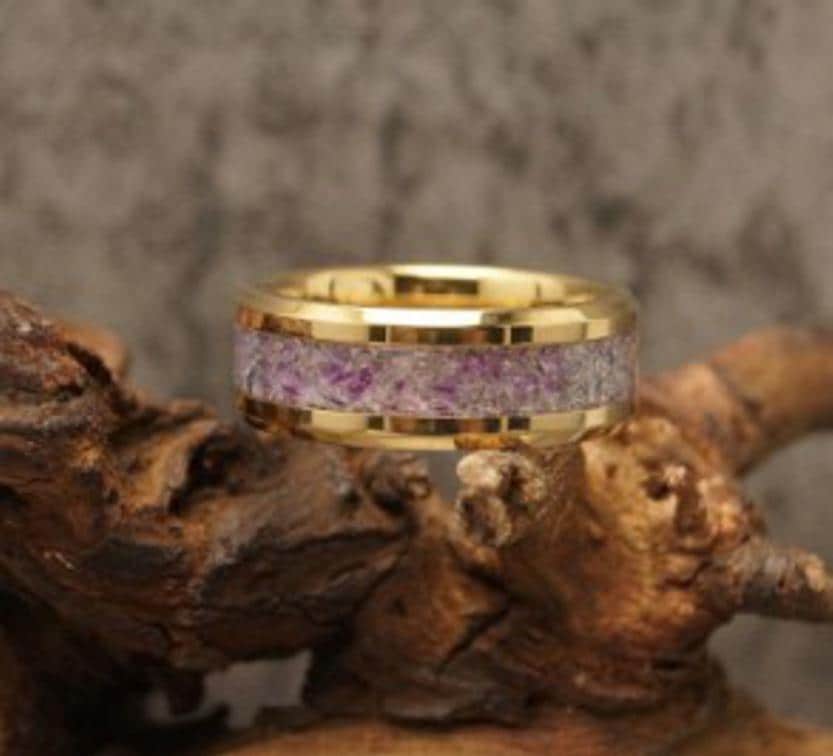 This genuine Gold Plated Tungsten Carbide ring inlaid with 100% genuine Alexandrite