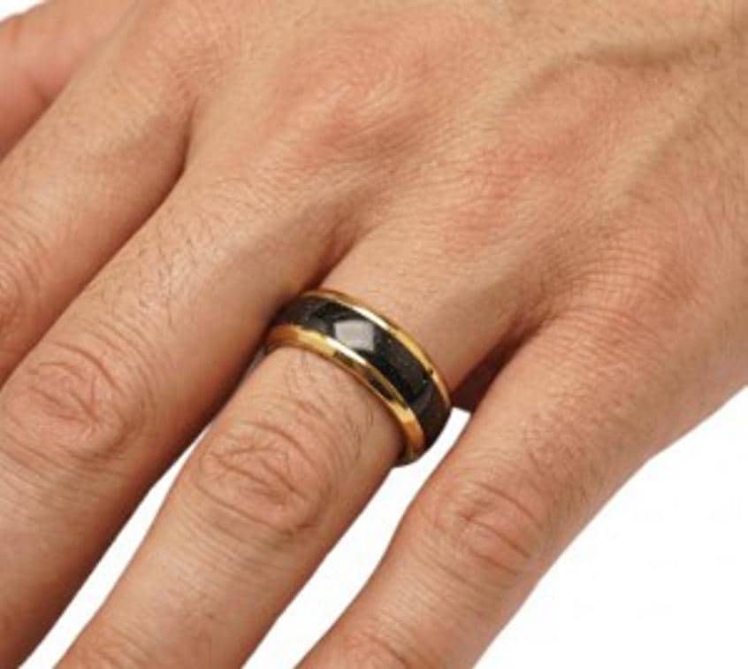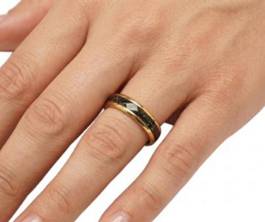 This genuine Gold Plated Tungsten Carbide ring inlaid with 100% genuine Black Graphite