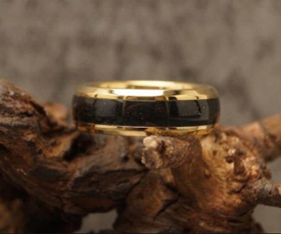 Graphite Black Inlay Gold Plated Tungsten Carbide Wedding Band available 4 mm, 6 mm or 8 mm wide - Unique ring