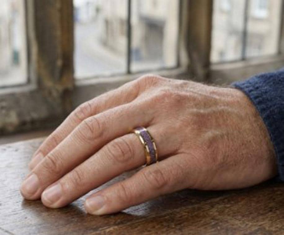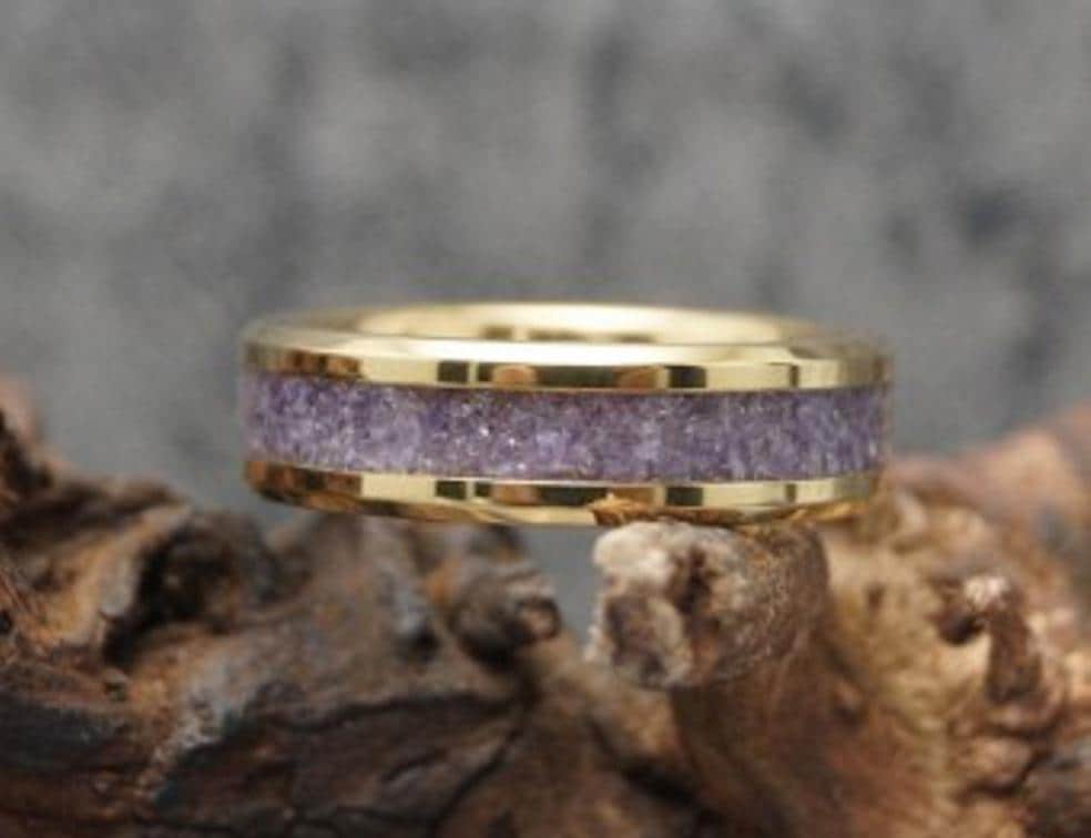 This genuine Gold Plated Tungsten Carbide ring inlaid with 100% genuine Amethyst