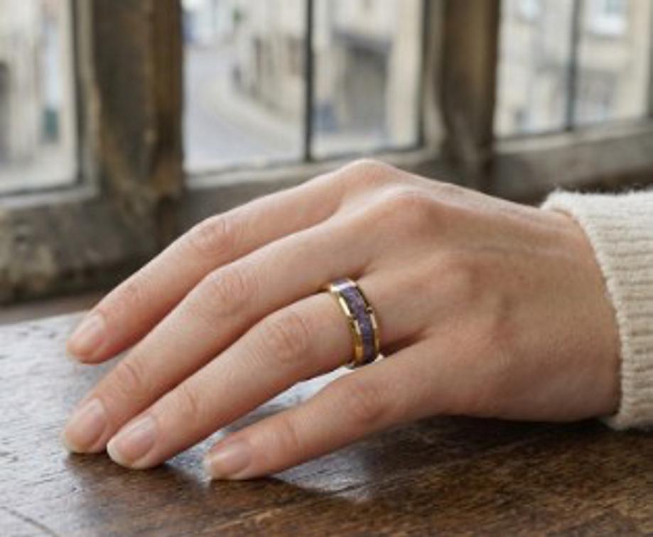 Amethyst Inlay Gold Plated Tungsten Carbide Band available 4 mm, 6 mm or 8 mm wide - Unique ring