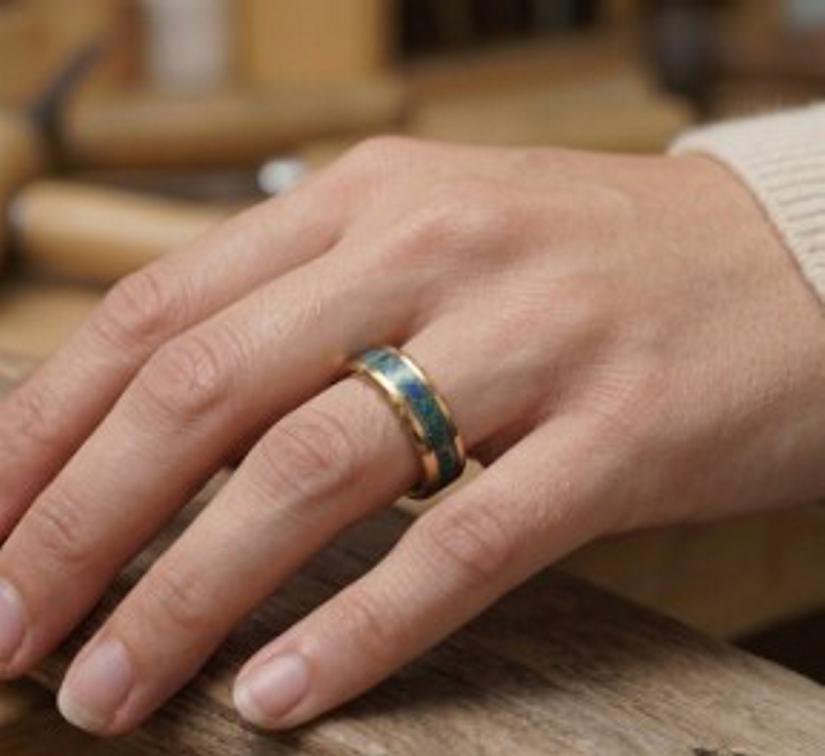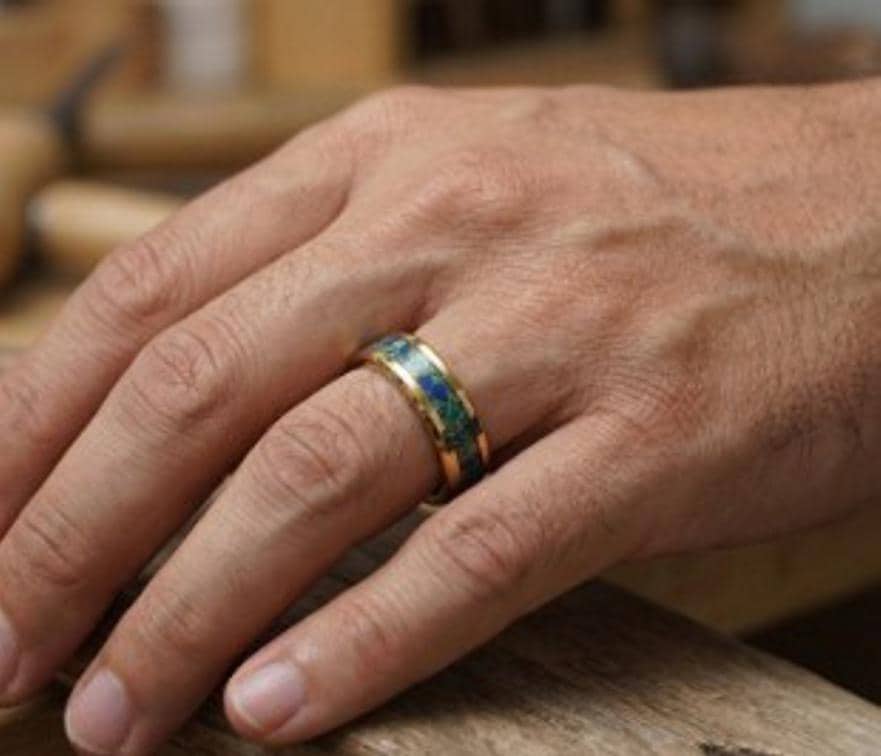 Azurite Gold Plated Tungsten Wedding Band - Ring for men and women - Unique Ring