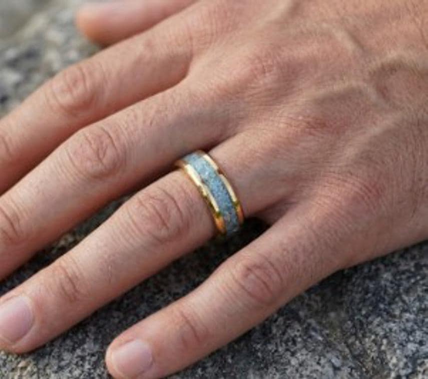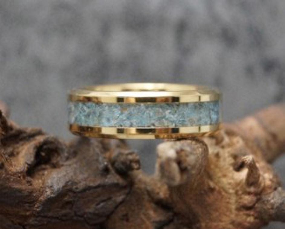 Blue Apatite Gold Plated Tungsten Wedding Band - Ring for men and women - Unique Ring