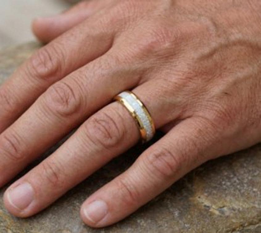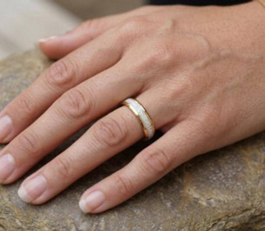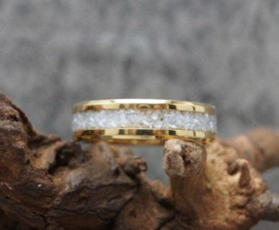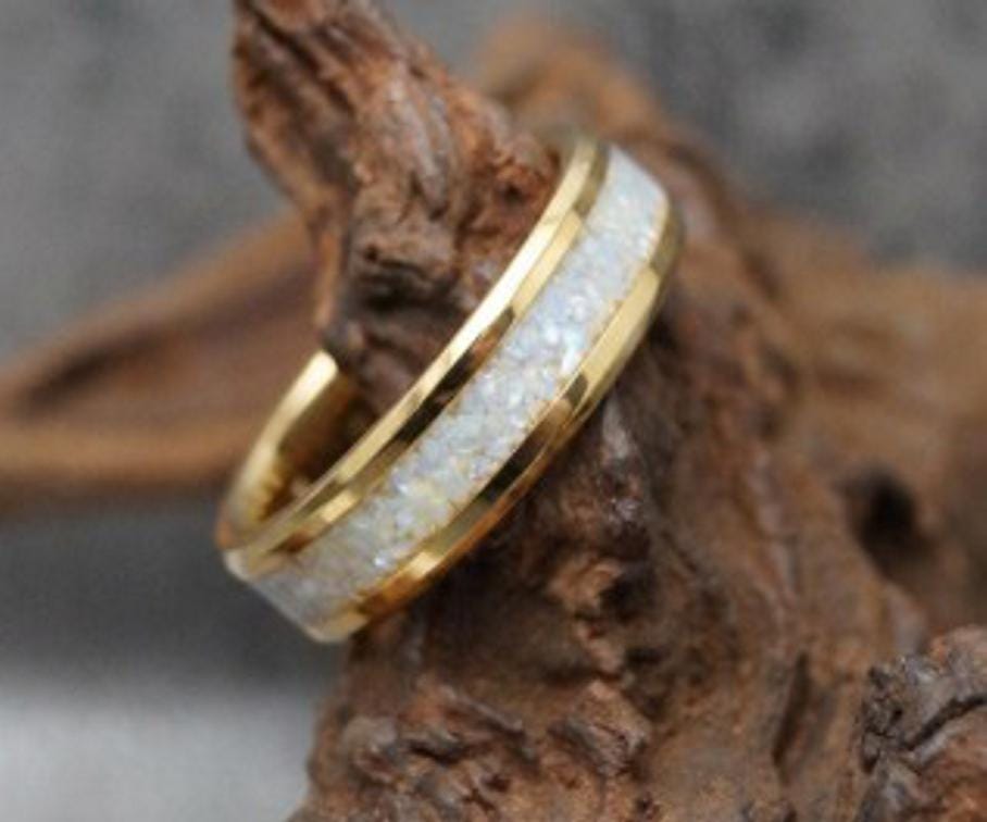 Pearl Ring - 100% Real Natural Freshwater Cultured White Pearls Inlaid Gold Plated Tungsten Band 4 mm, 6 mm or 8 mm wide ring.