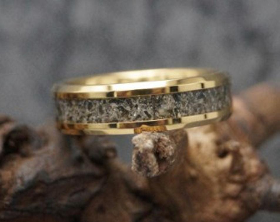 Natural Golden Obsidian Inlay Gold Plated Tungsten Carbide Wedding Band available Band 4 mm, 6 mm or 8 mm Wide Rings - Unique Ring - Gold Plated Tungsten Inlaid Ring,