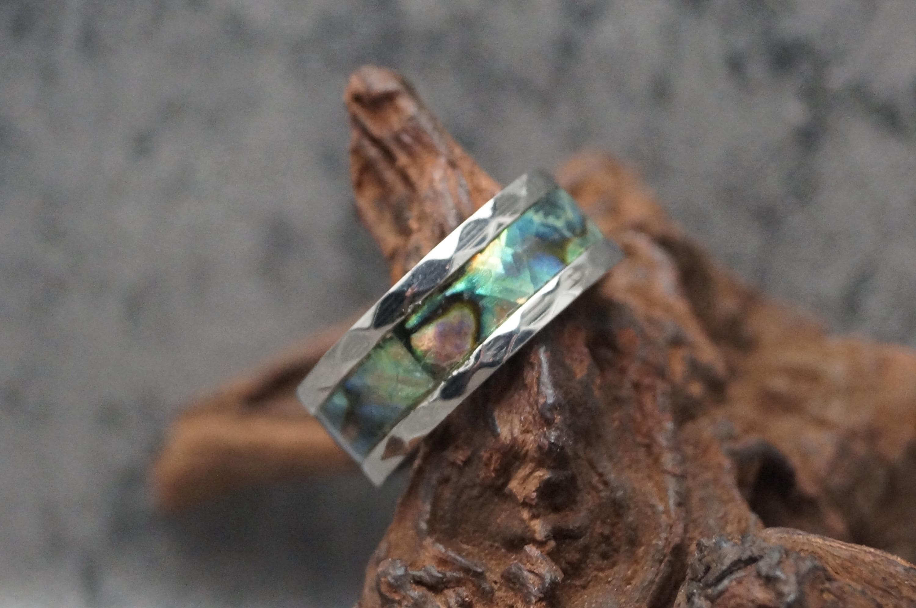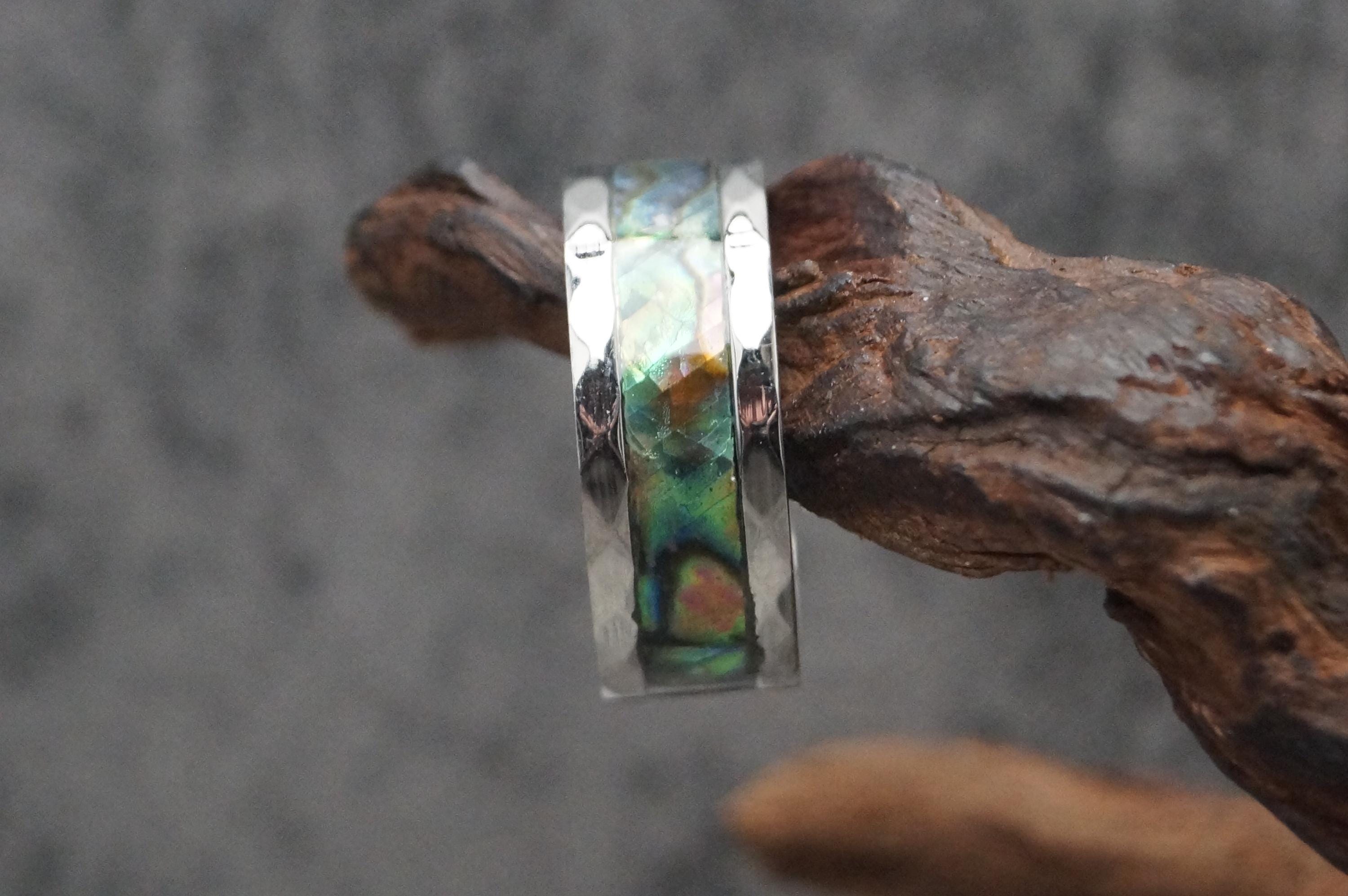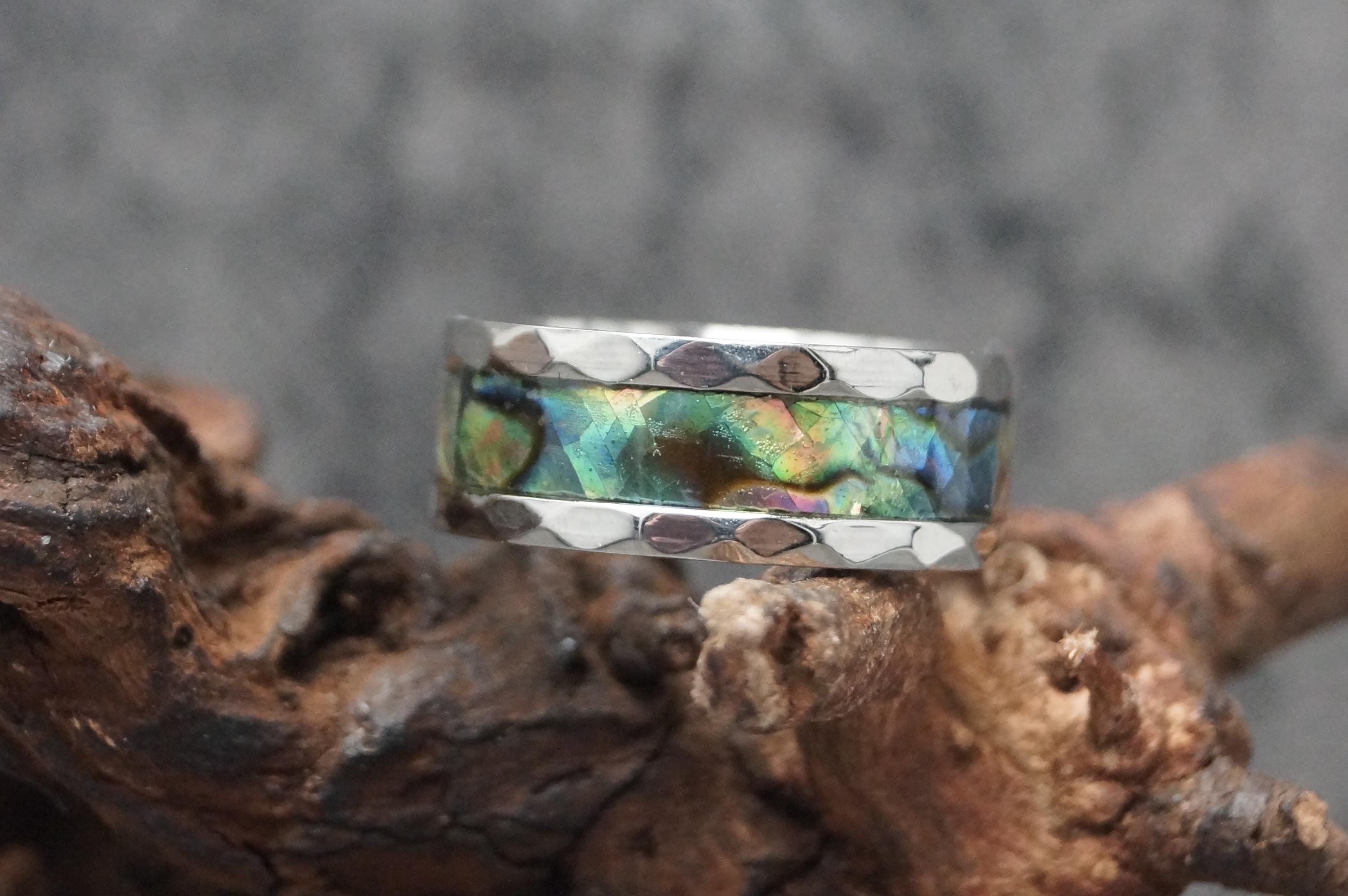 Ring Width: 8 mm / 0.314961" Every Abalone Shell Tungsten Faceted Ring is unique.