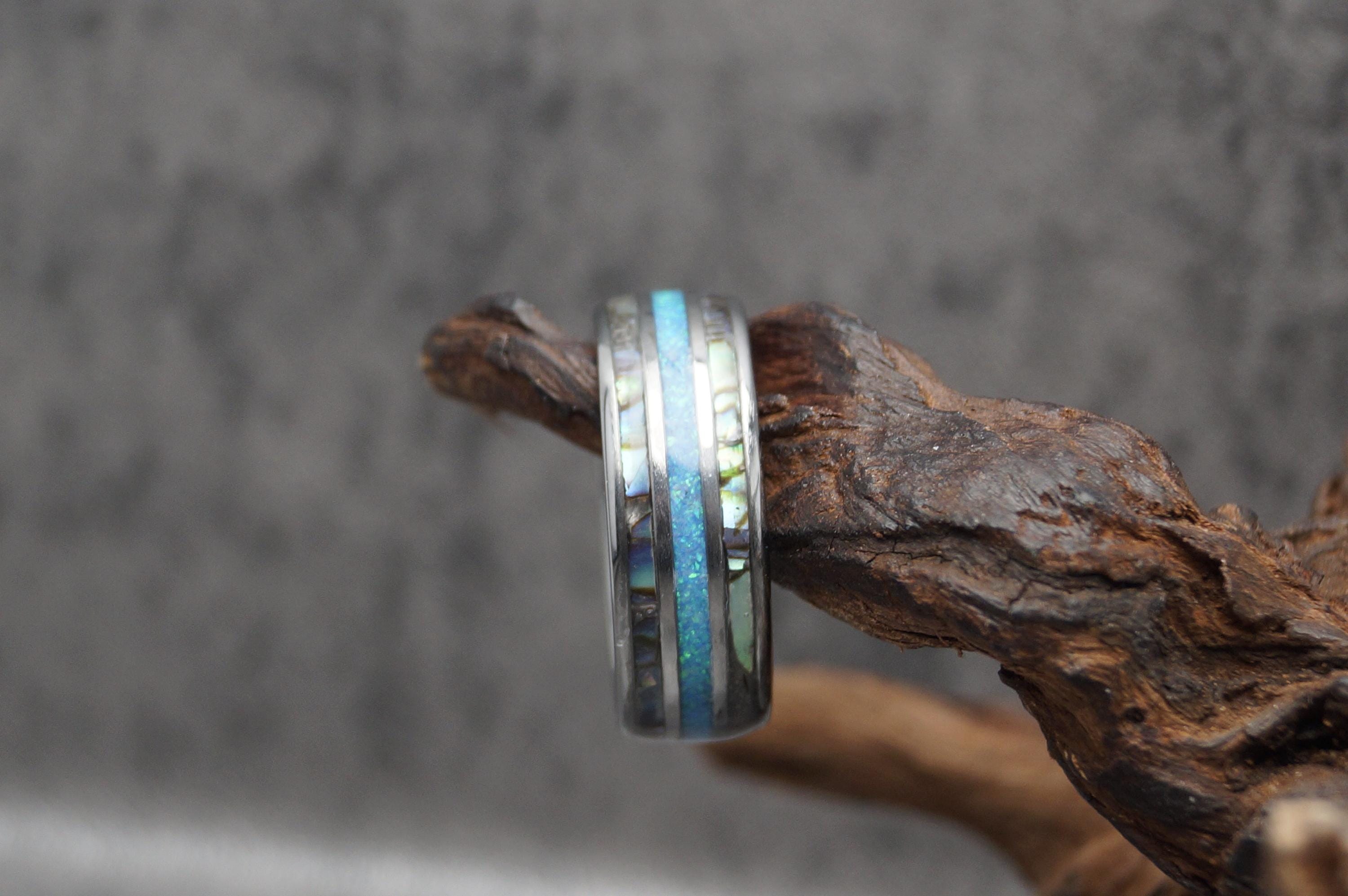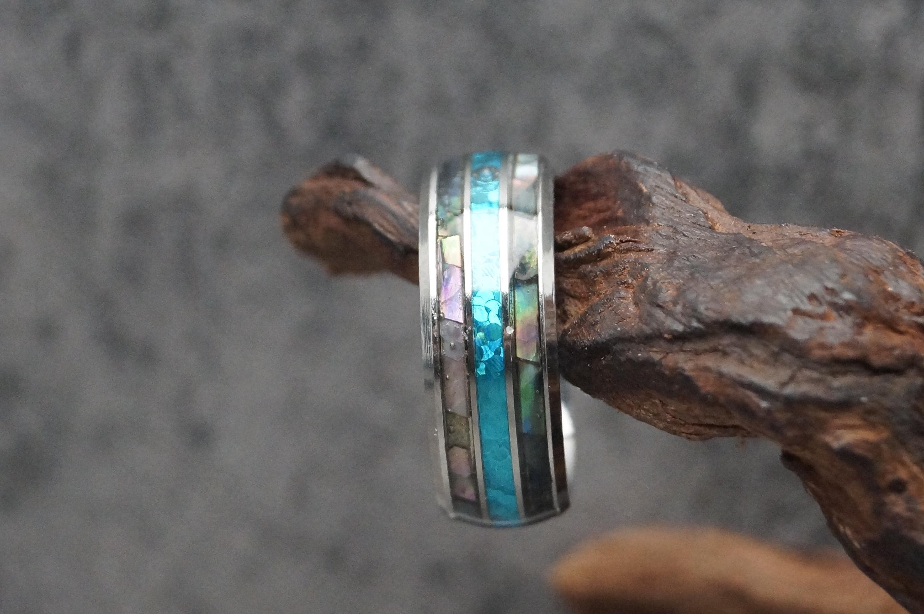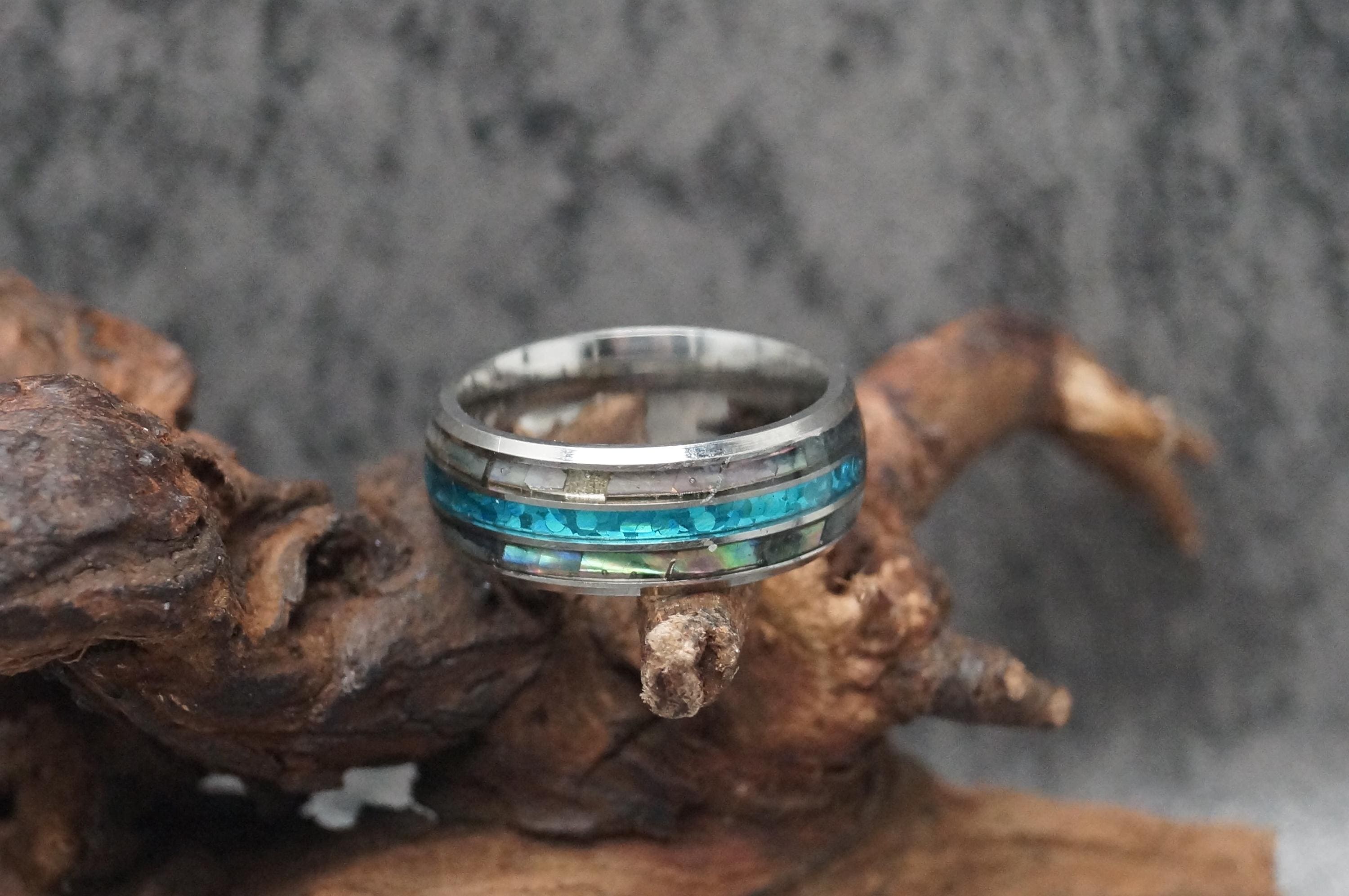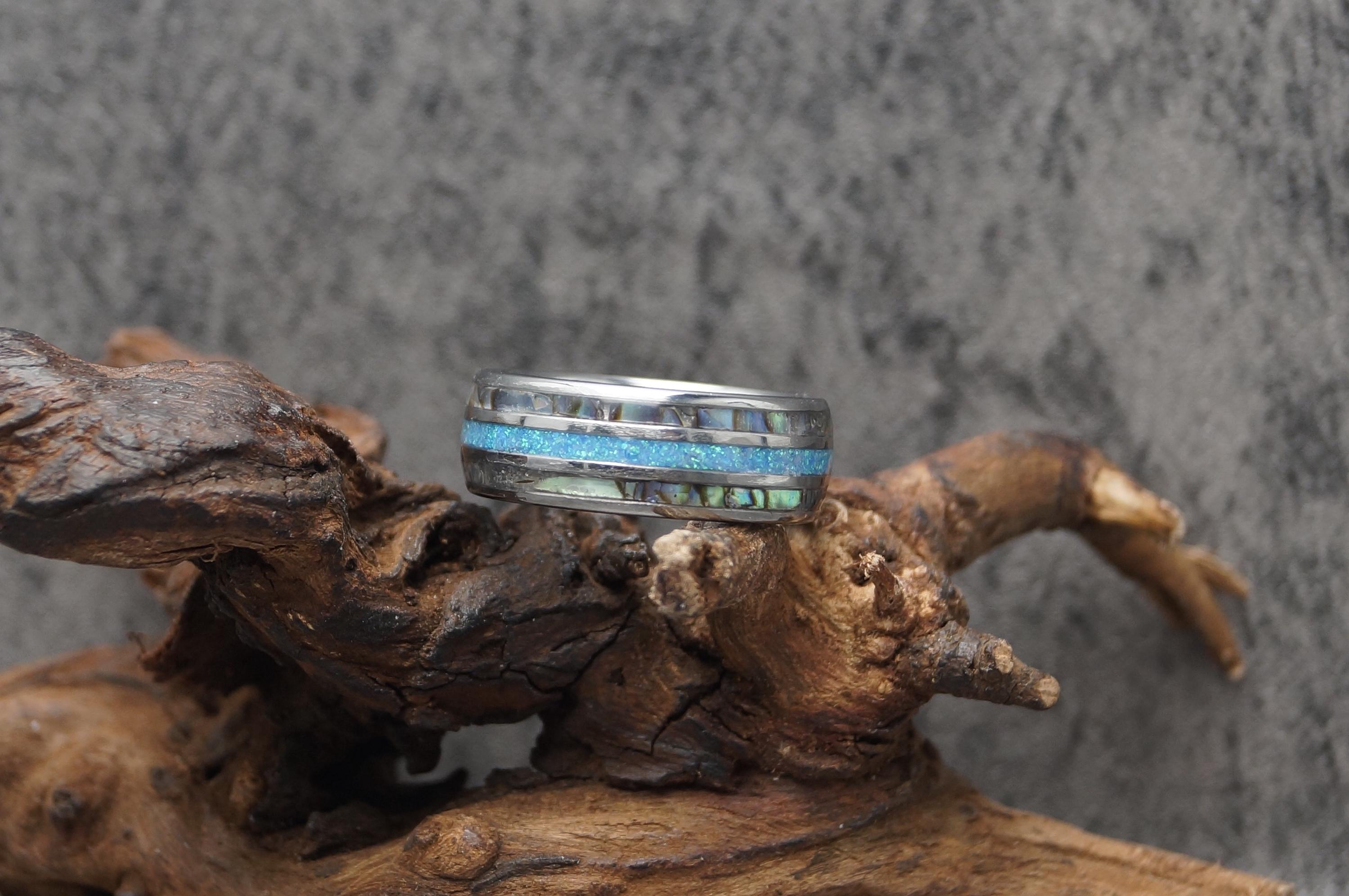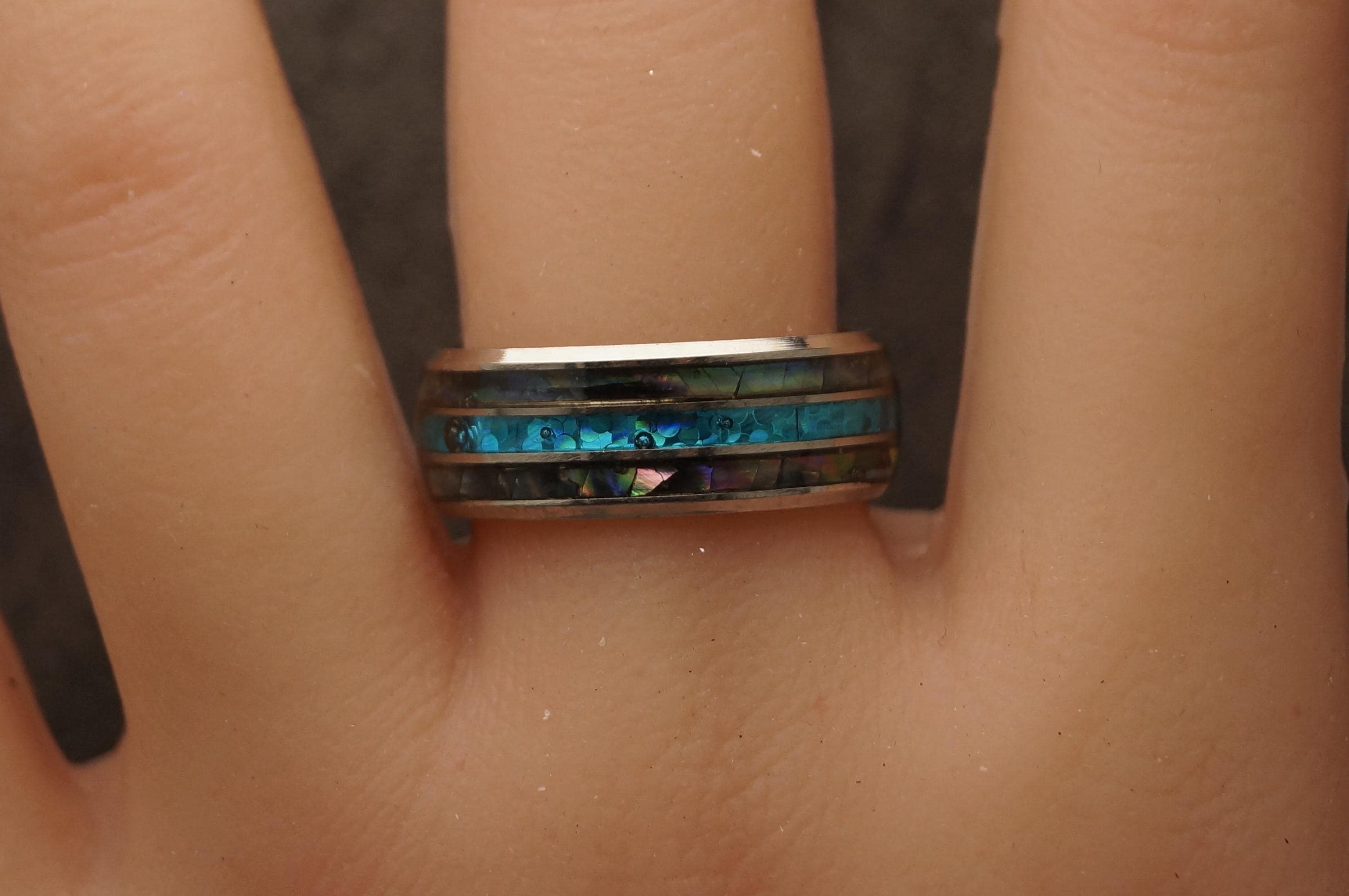 Ring Width: 8 mm / 0.314961" - Every Abalone with Blue Opal Ring is unique